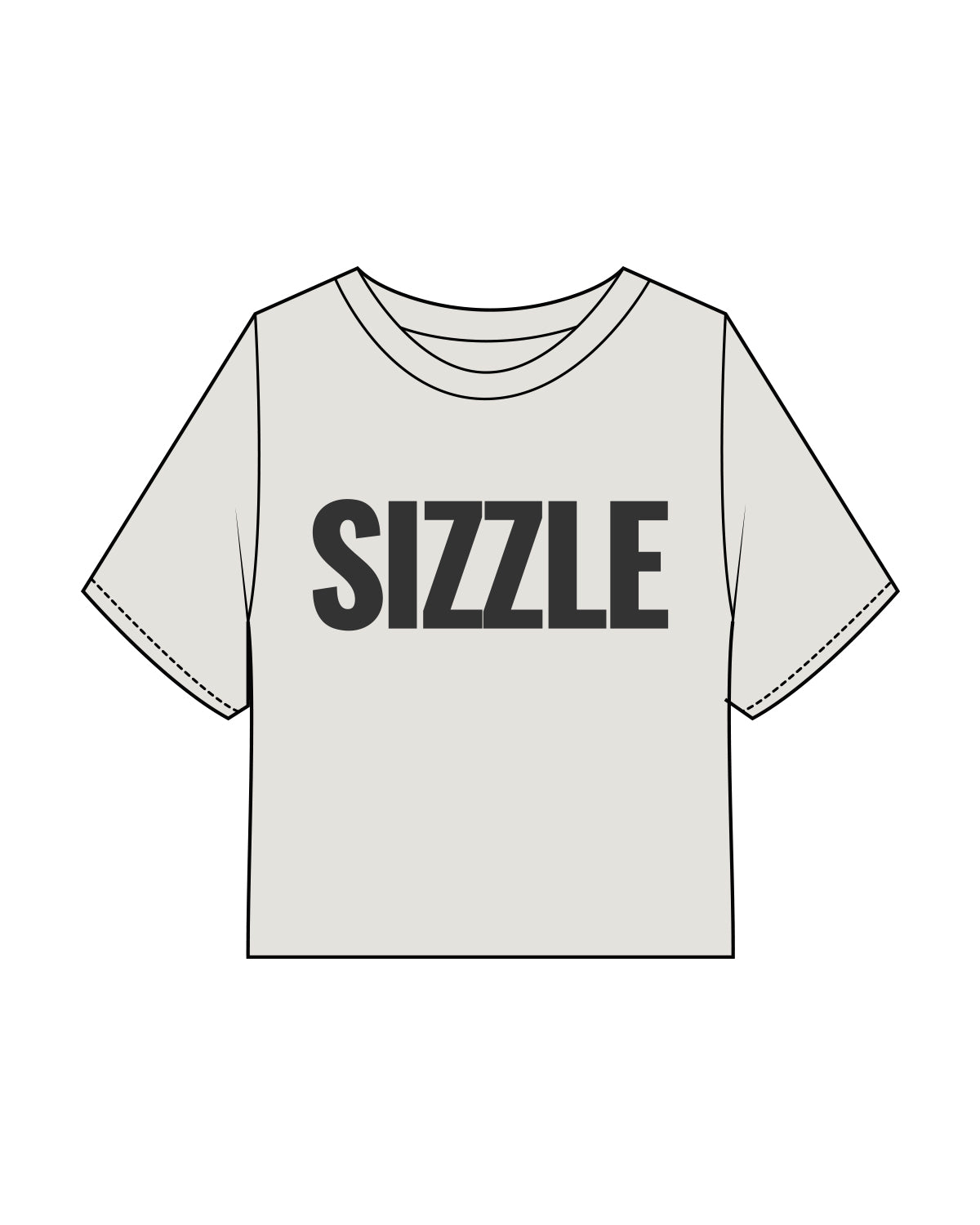 The Heavyweight Crop Tee - Washed Bone - Sizzle - Center Chest - Washed Black