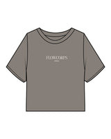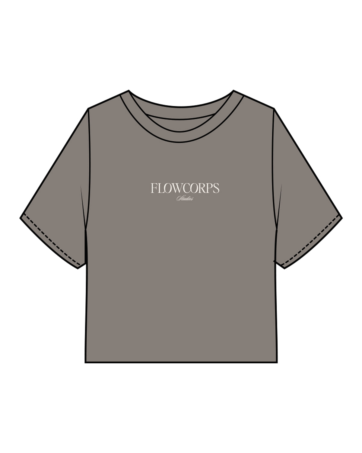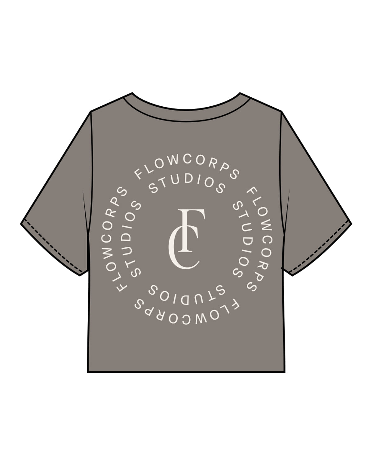 The Heavyweight Crop Tee - Washed Gray - Flowcorps - Center Chest & Back Round Stacked - Ivory