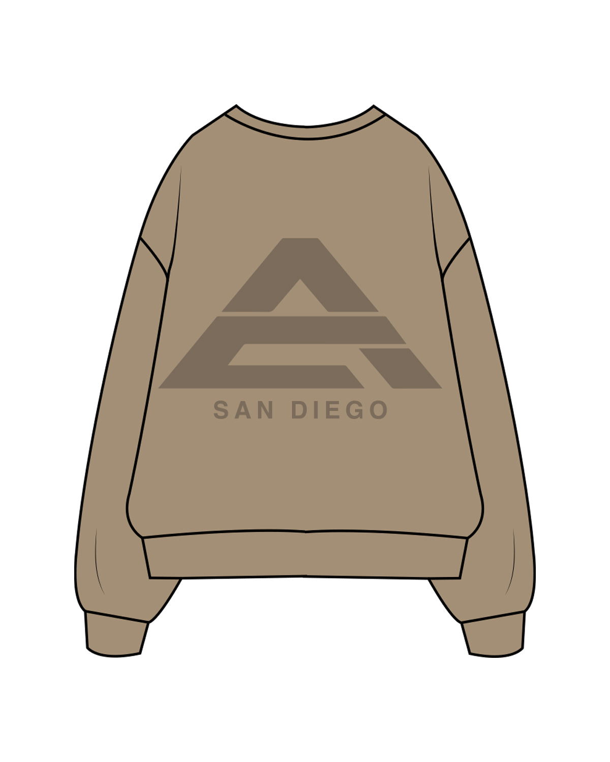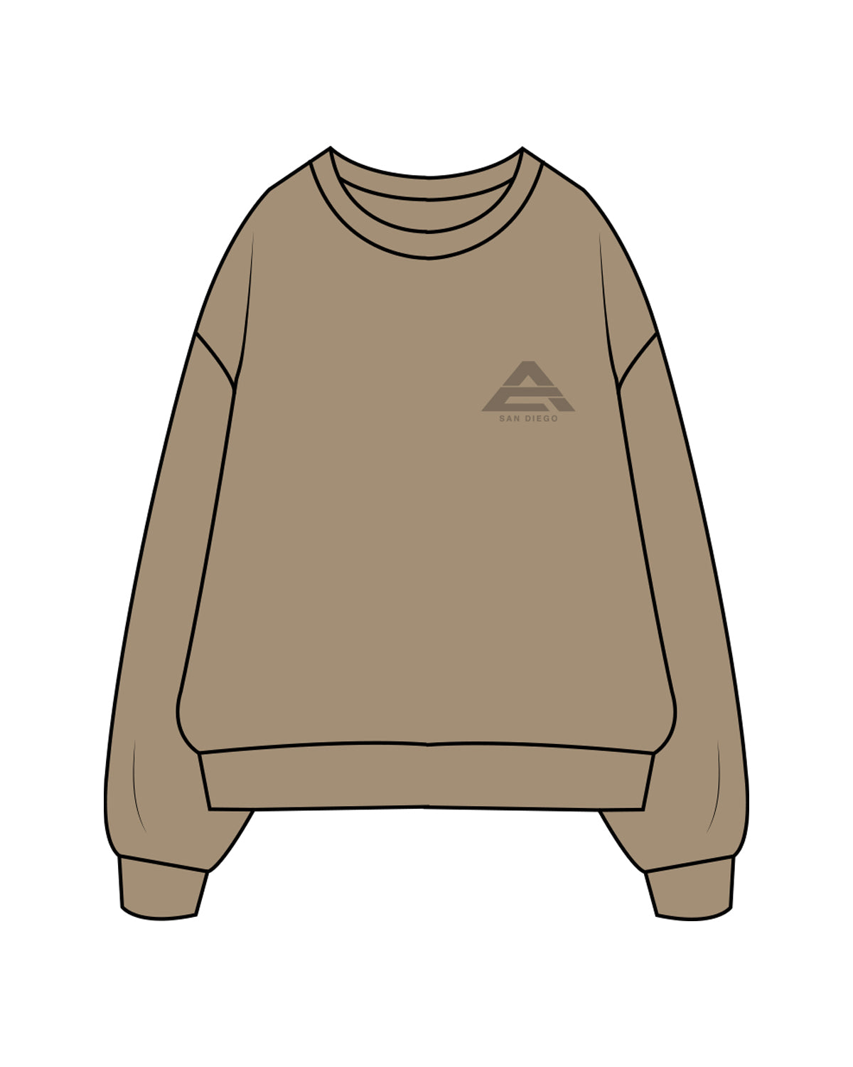 The Mens Crewneck - Sand - Athletic Culture - Left Chest Stacked & Back Center Stacked - Tone on Tone