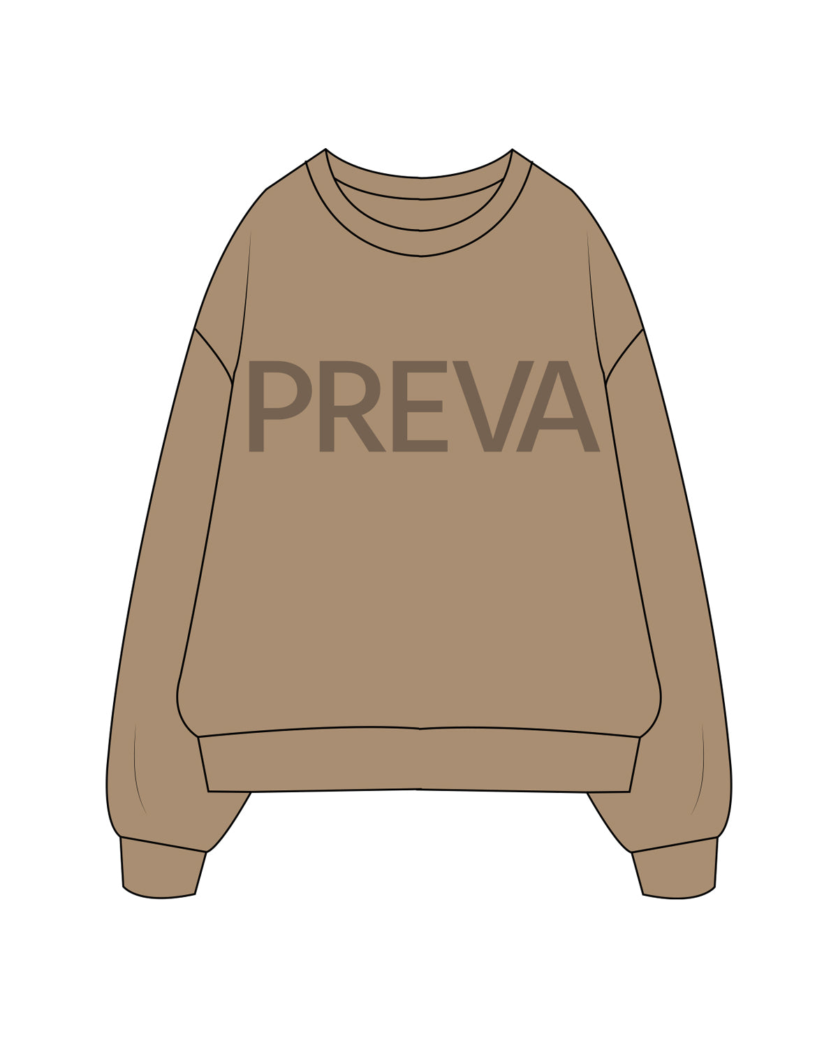 The Mens Crewneck - Sand - Preva - Center Chest Logo - Tone on Tone