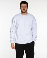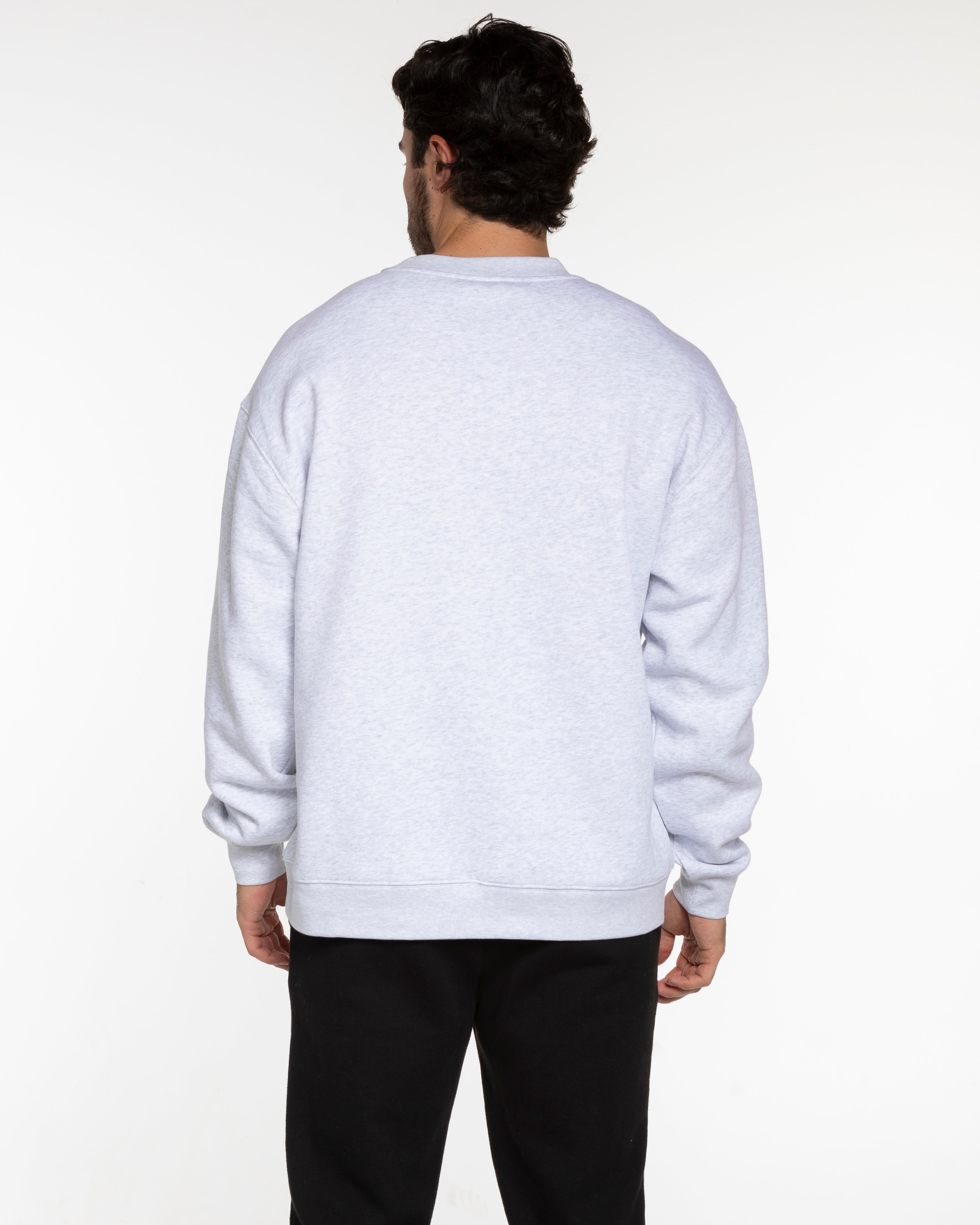 The Mens Crewneck - White Heather - Higher Ground - Center Chest - Red
