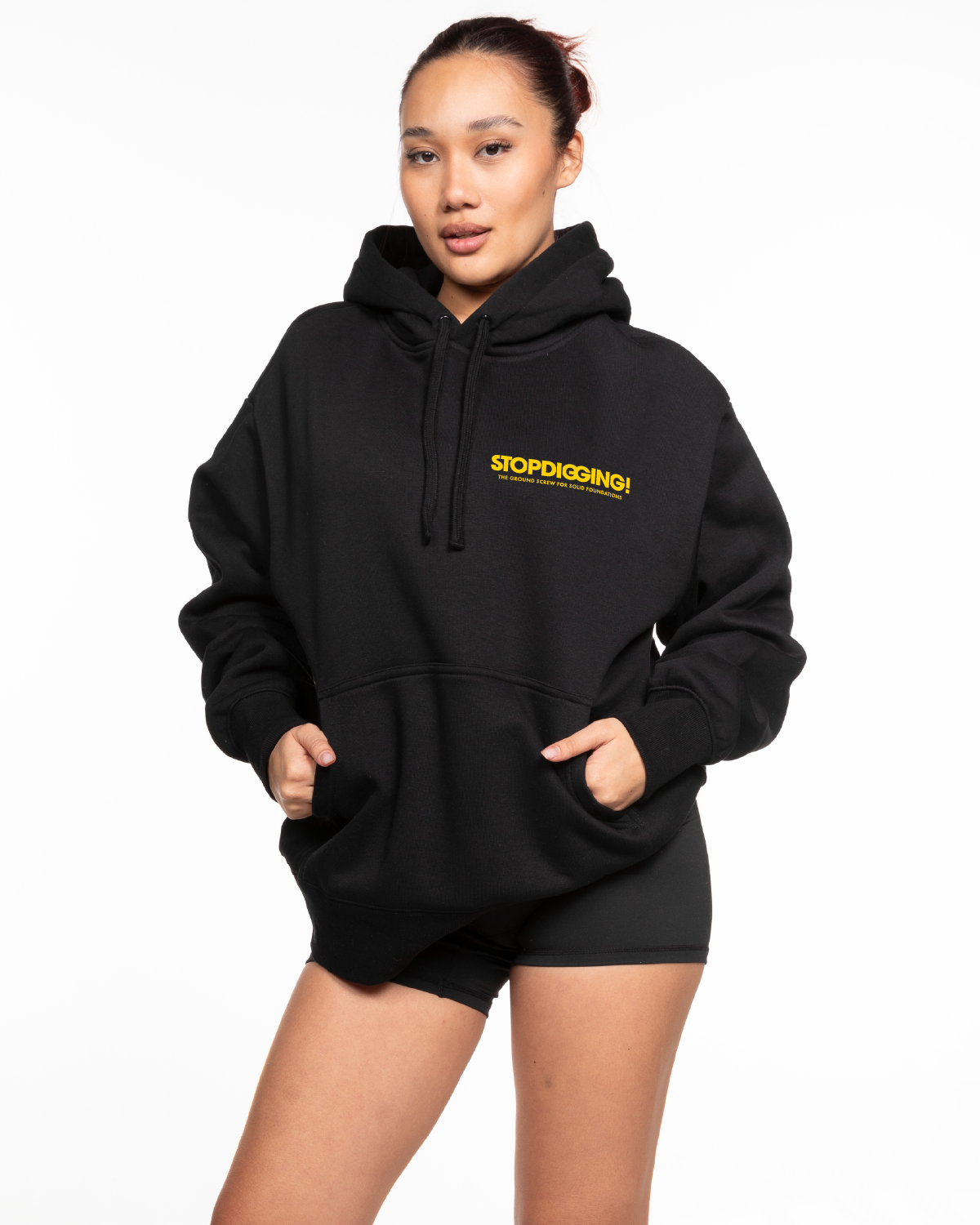 The Mens Heavyweight Hoodie - Black - Groundbreakers - Left Chest Stacked - Yellow
