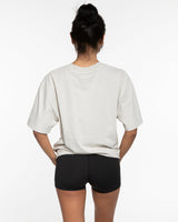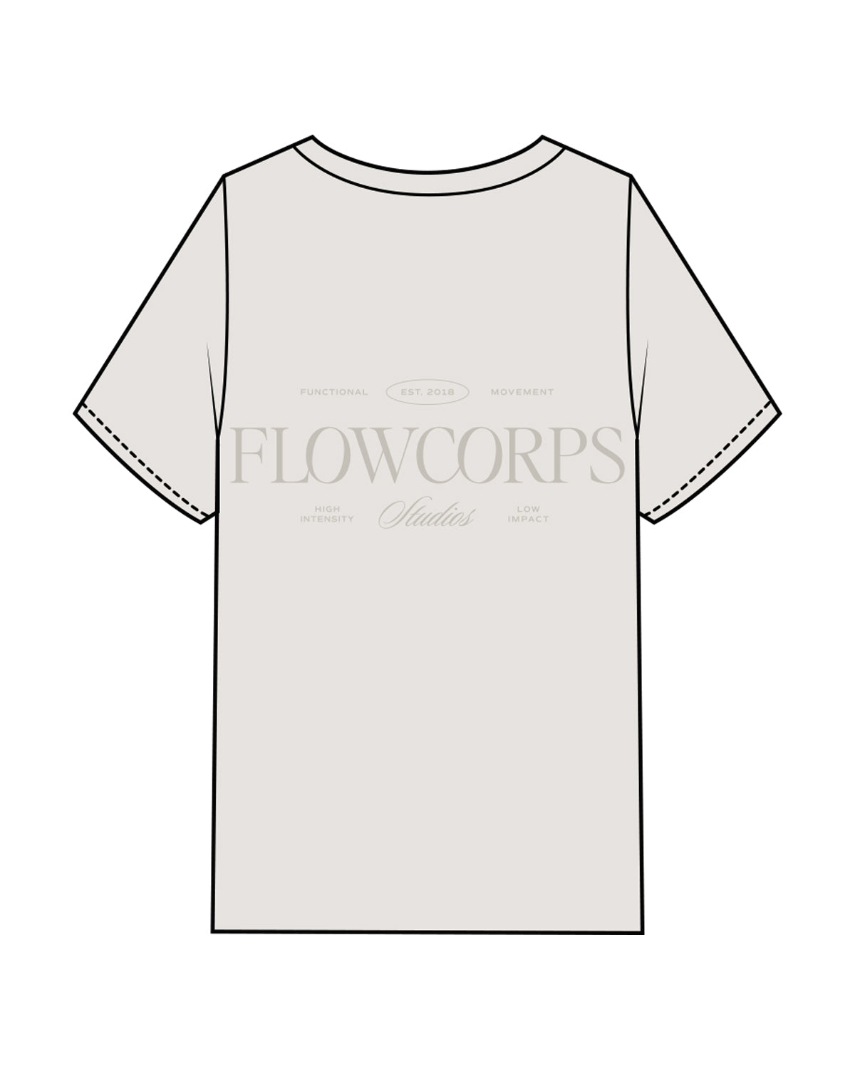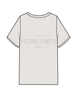 The Mens Heavyweight Tee - Washed Bone - Flowcorps - Center Chest & Back Center Stacked - Tone on Tone