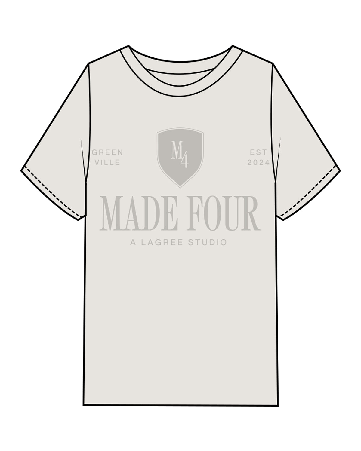 The Mens Heavyweight Tee - Washed Bone - M4Lagree - Center "M4 Stacked" & Back Center Neckline - Tone on Tone