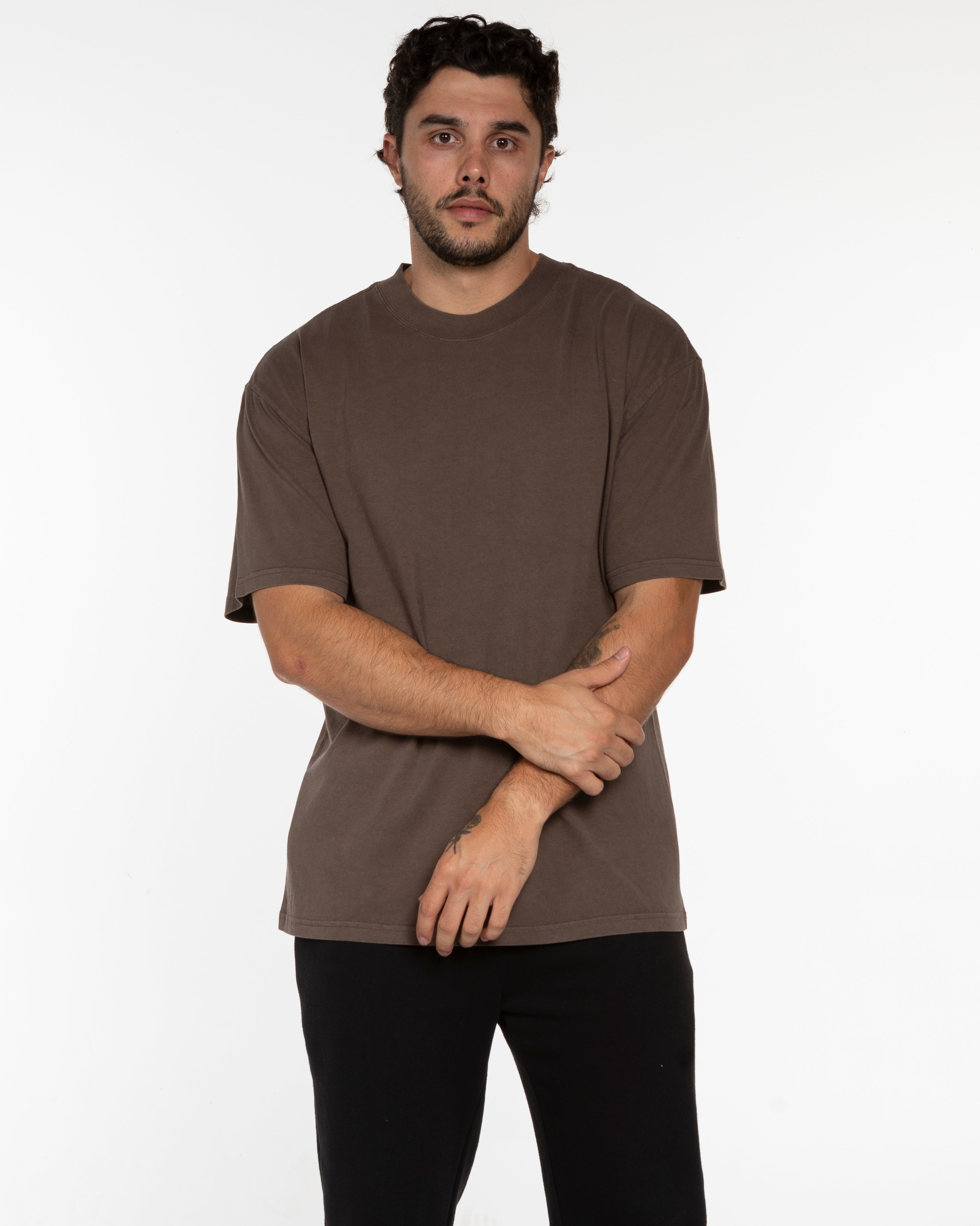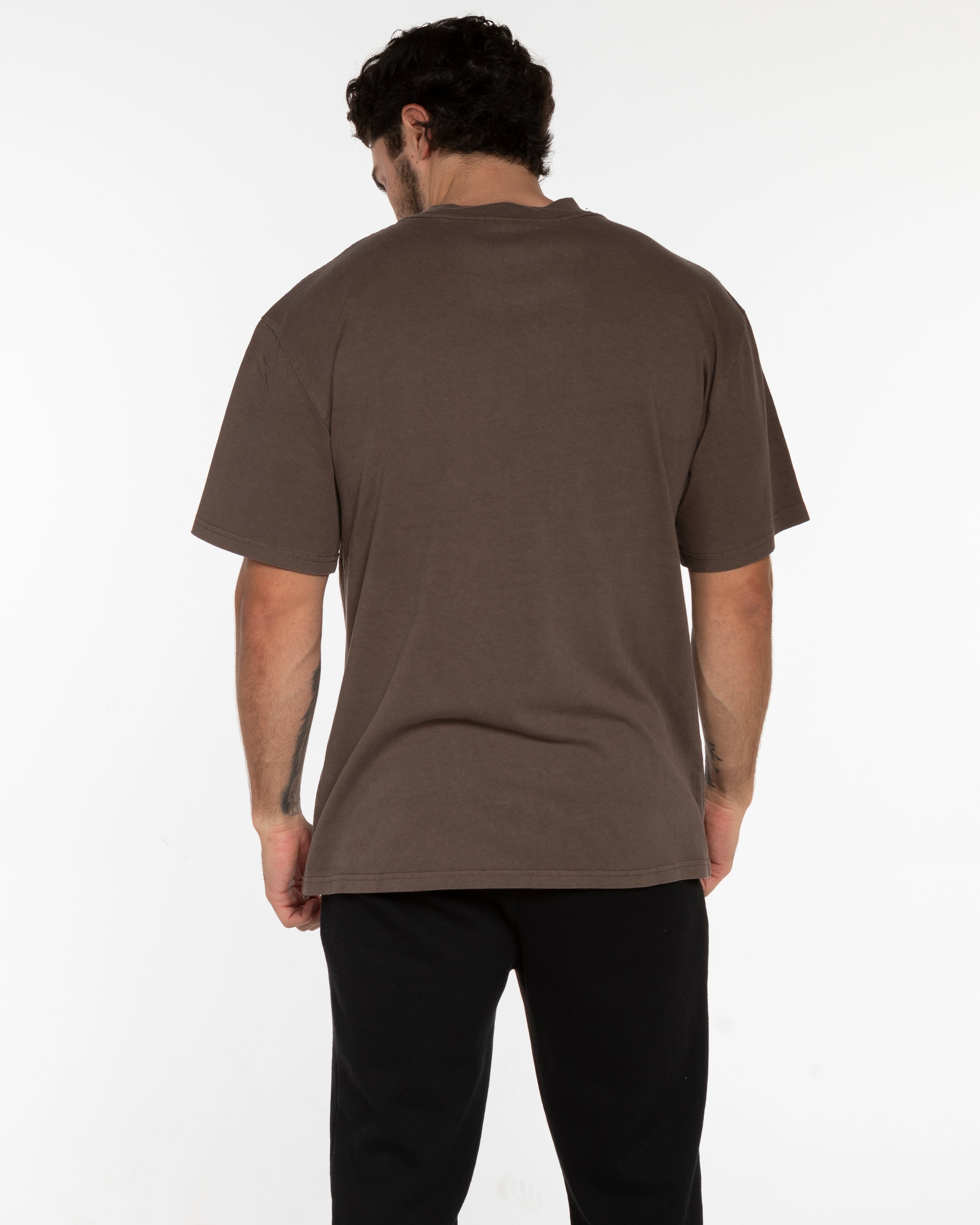 The Mens Heavyweight Tee - Washed Walnut - Athletic Culture - Left Chest Stacked & Back Center Stacked - Tone on Tone
