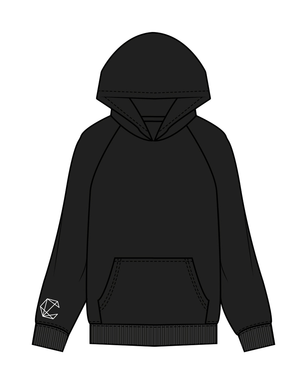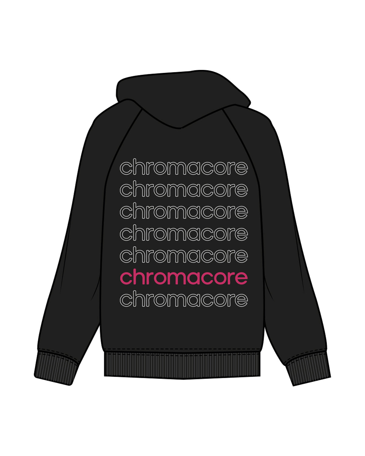 The Mens Hoodie - Black - Chromacore - Right Sleeve & Back Stacked - Full Color