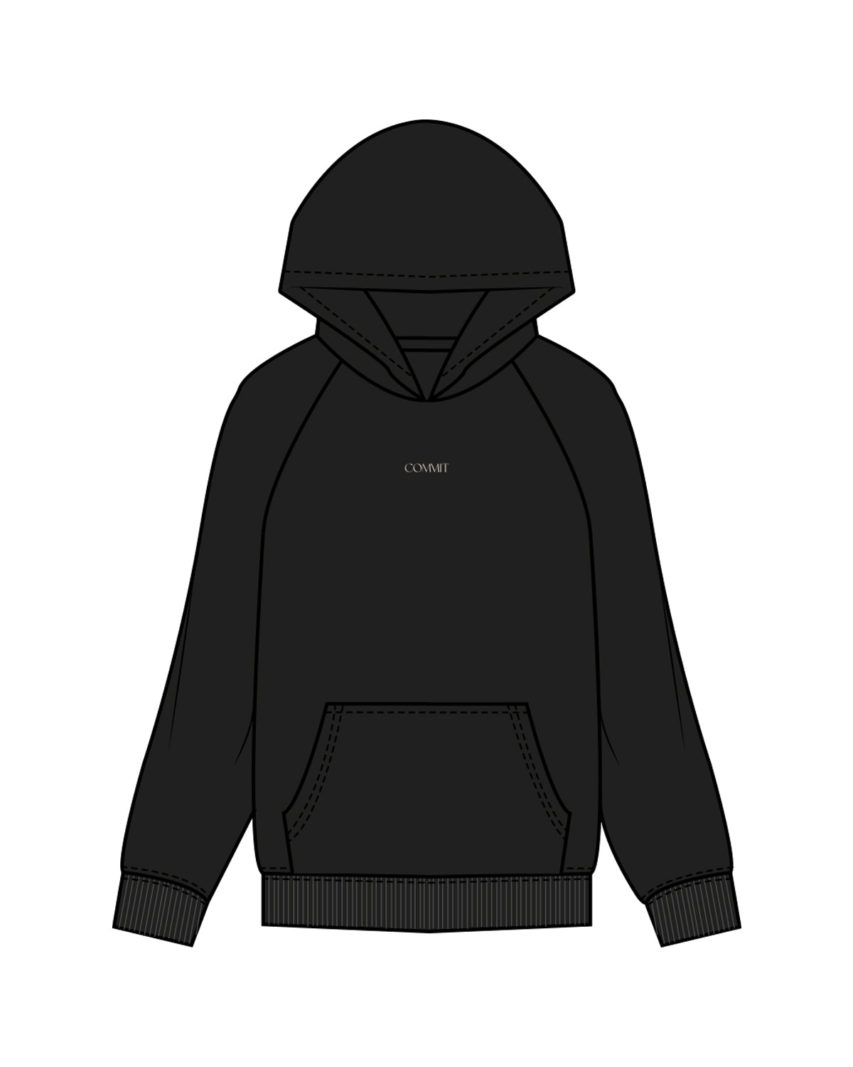The Mens Hoodie - Black - Commit Fitness - Center Chest & Back Stacked - Oat