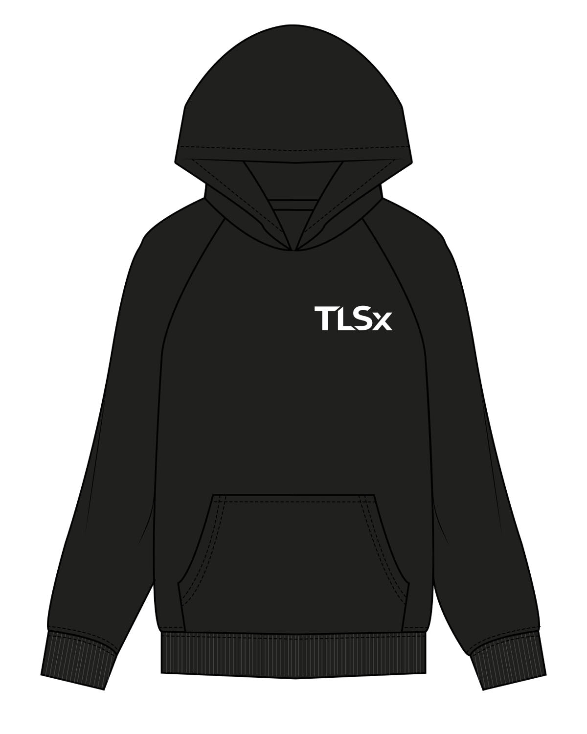 The Mens Hoodie - Black - TLSX - Left Chest - White