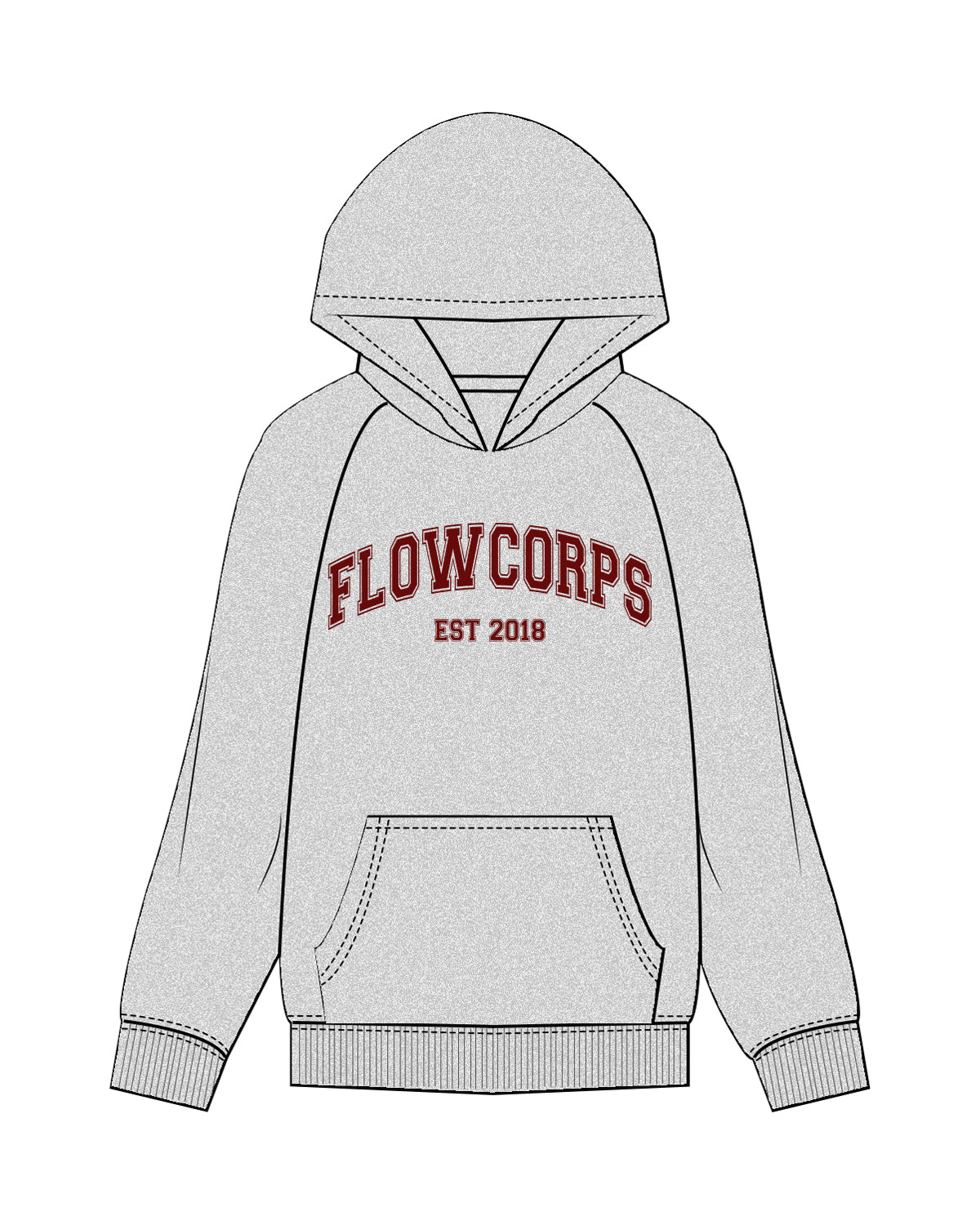 The Mens Hoodie - Heather - Flowcorps - Center Chest Stacked - Maroon