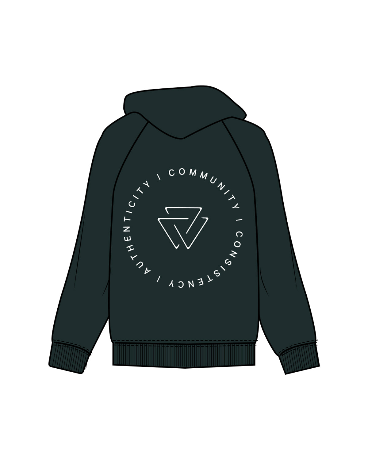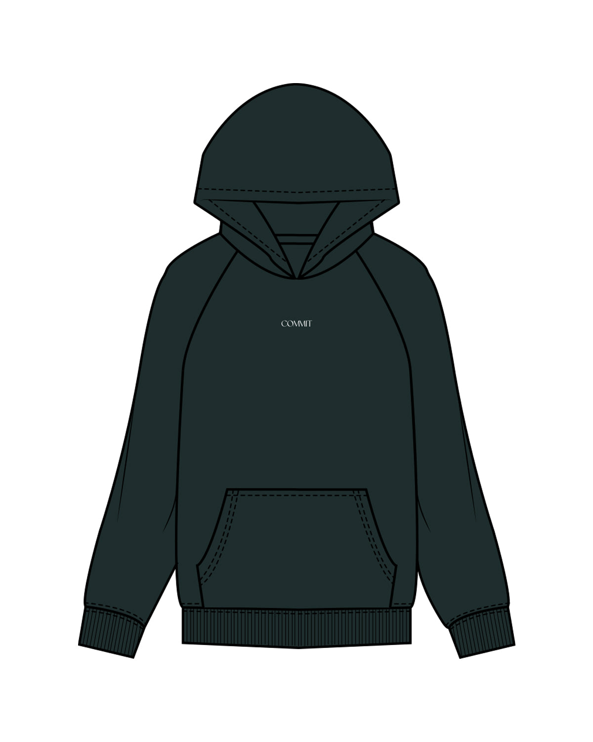The Mens Hoodie - Pine Green - Commit Fitness - Center Chest & Back Stacked - White
