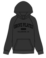 The Mens Hoodie - Washed Black - Grove Pilates - Center Chest Stacked - Black