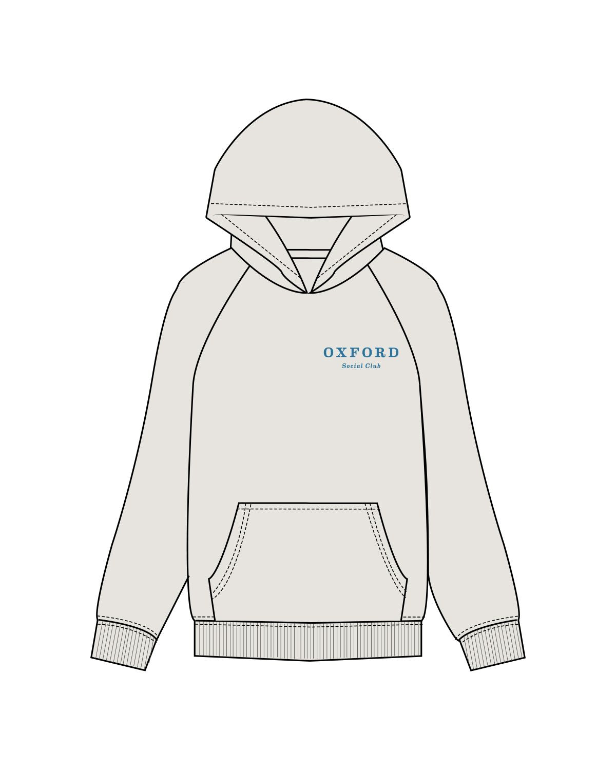 The Mens Hoodie - Washed Bone - Oxford Social Club - Left Chest Stacked & Back Stacked - Full Color