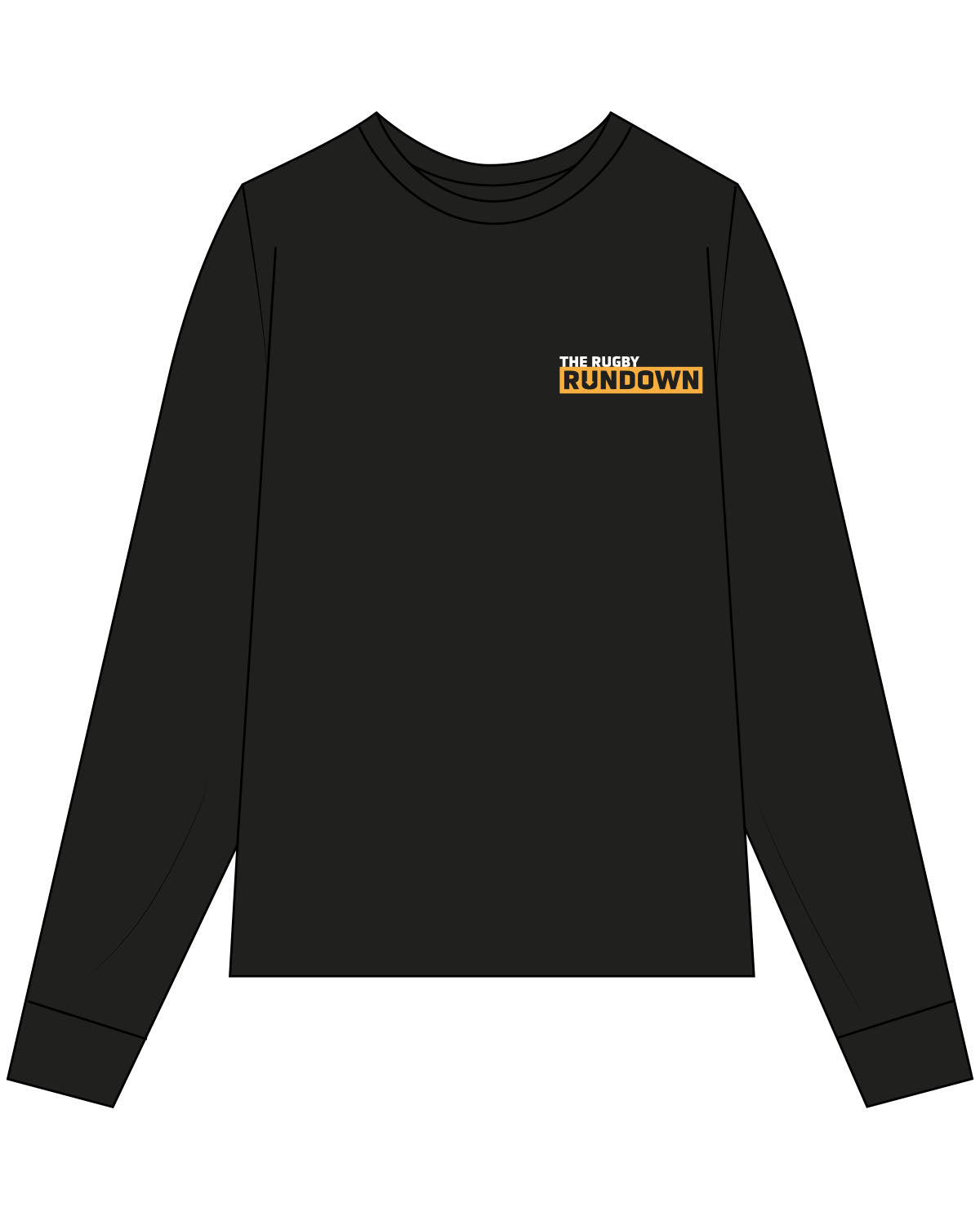 The Mens Long Sleeve - Black - Rugby Rundown - Left Chest Stacked - Full Colors