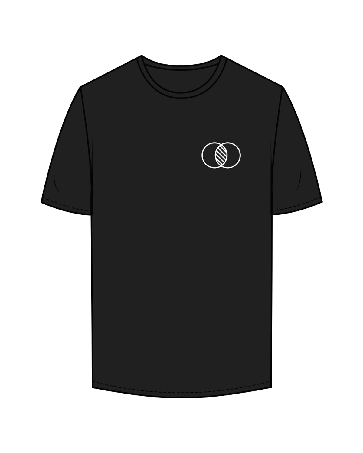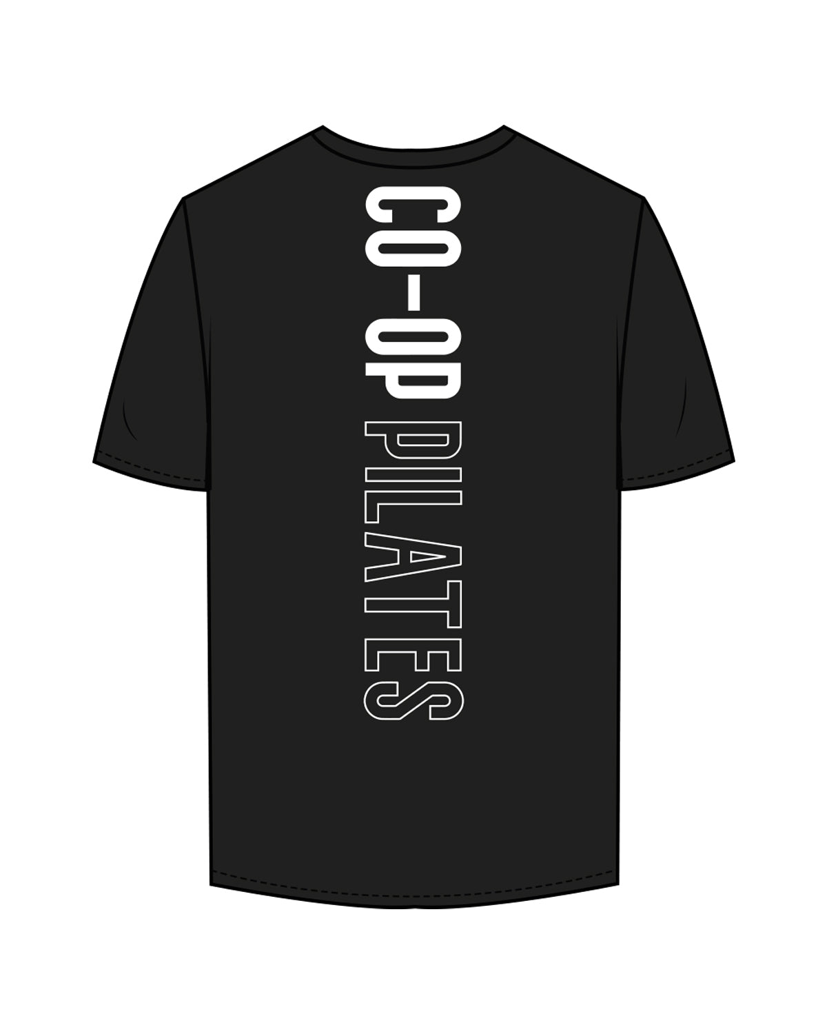 The Mens Tee - Black - Co-Op Pilates - Left Chest & Back Center Stacked - White