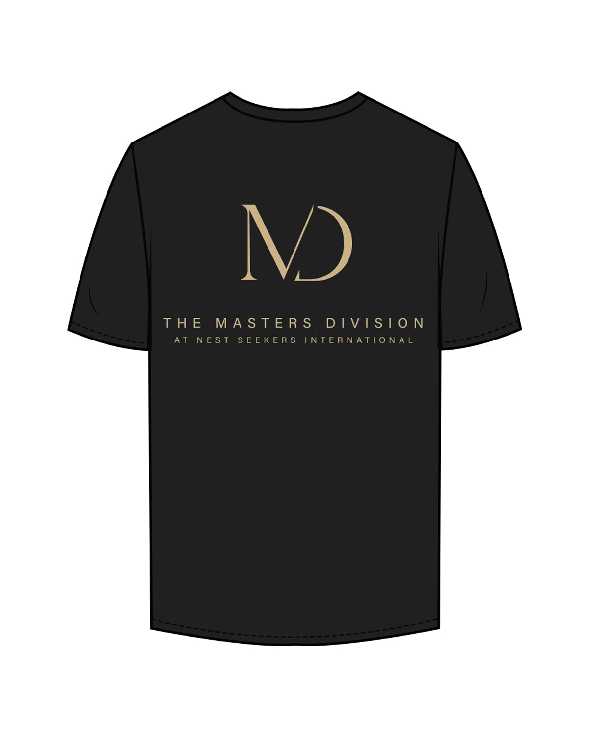 The Mens Tee - Black - Masters Division - Left Chest & Back Stacked - Glossy Gold
