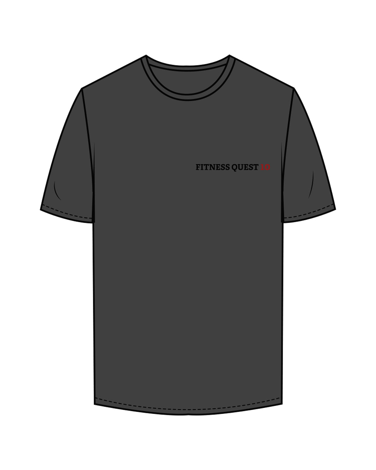 The Mens Tee - Charcoal - Fitness Quest 10 - Left Chest & Back Stacked - Full Color