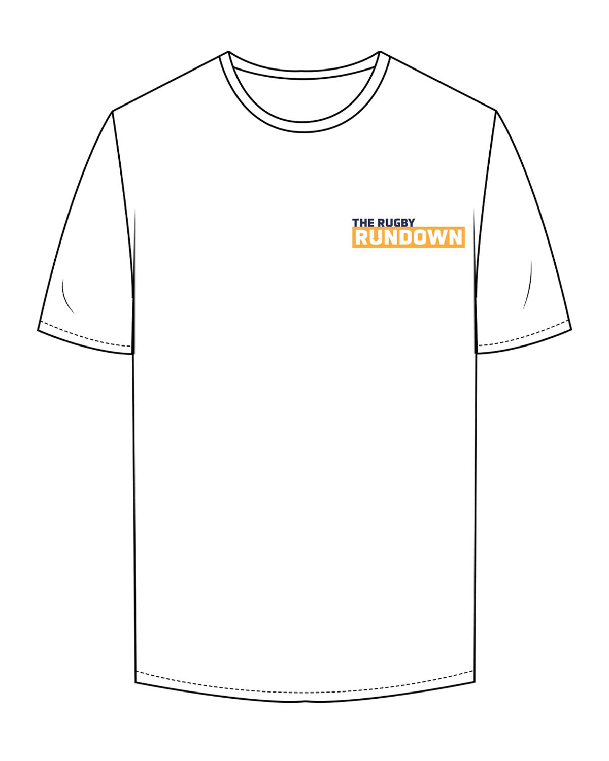 The Mens Tee - White - Rugby Rundown - Left Chest Stacked - Full Colors