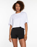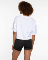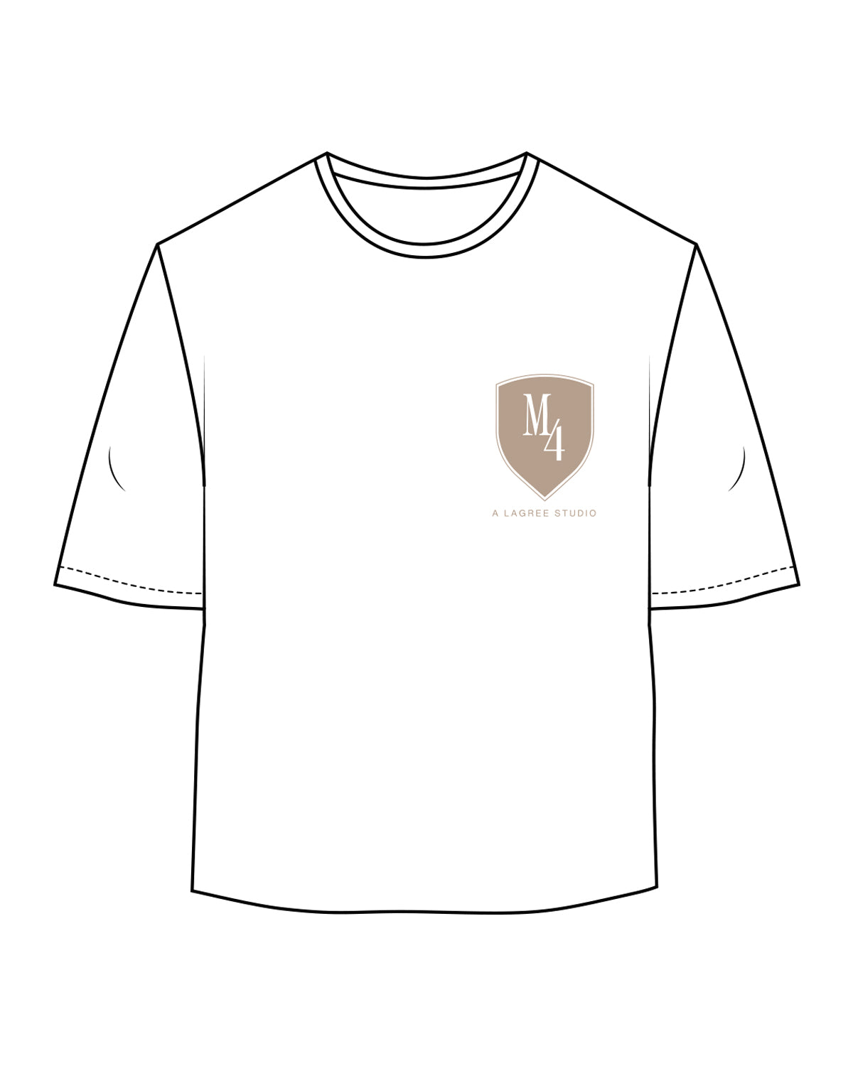 The Oversized Crop Tee - White - M4Lagree - Left Chest Icon Stacked - Sand