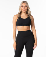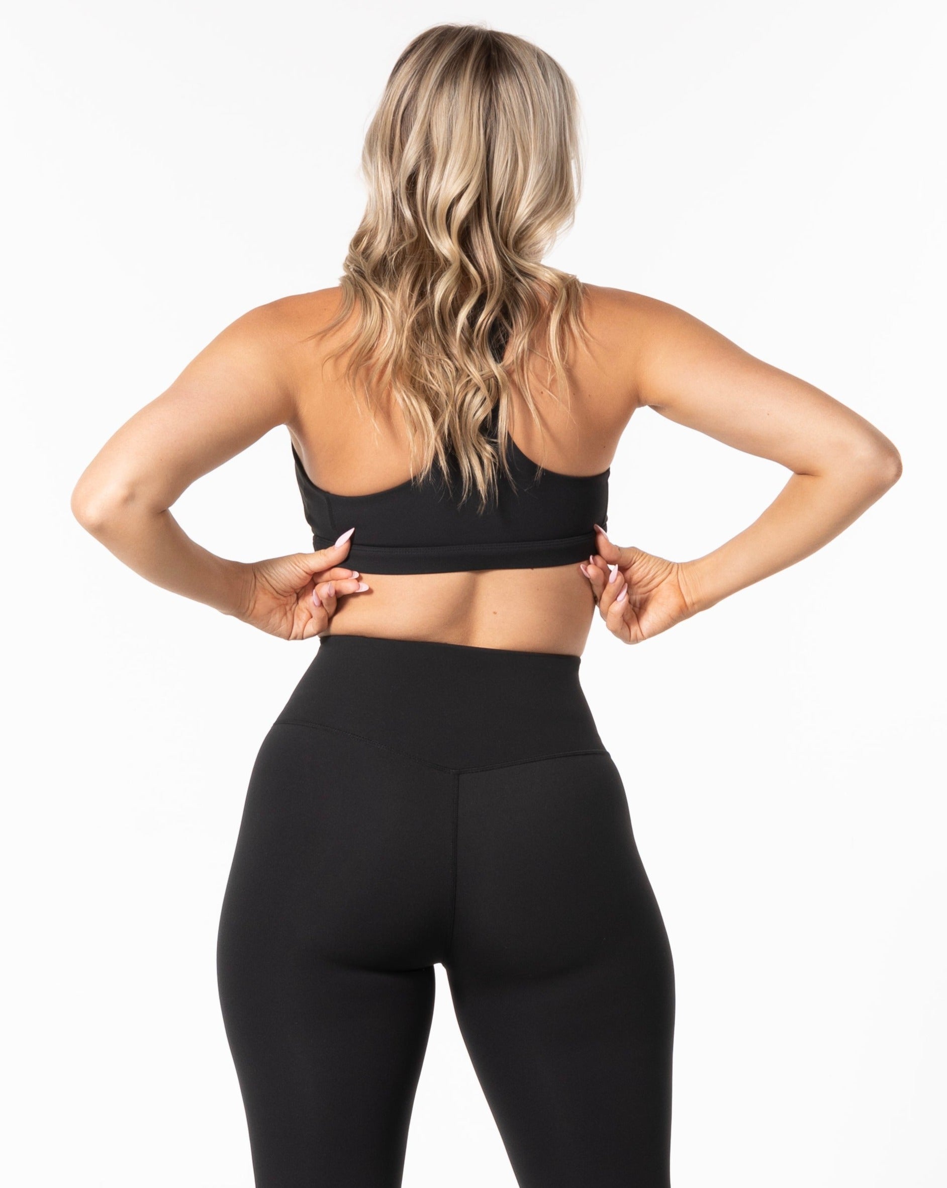 The Racer Bra - Black - F45 Medford - Center Chest Stacked - White