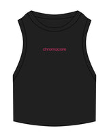 The Ribbed Crop Tank - Black - Chromacore - Center Chest - Embroidered Pink