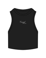The Ribbed Crop Tank - Black - Dr.Courtney - Center Chest Stacked - Embroidered White