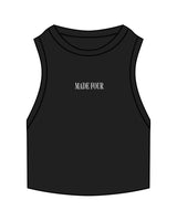 The Ribbed Crop Tank - Black - M4Lagree - "Made Four" - Center Chest - Embroidered - White