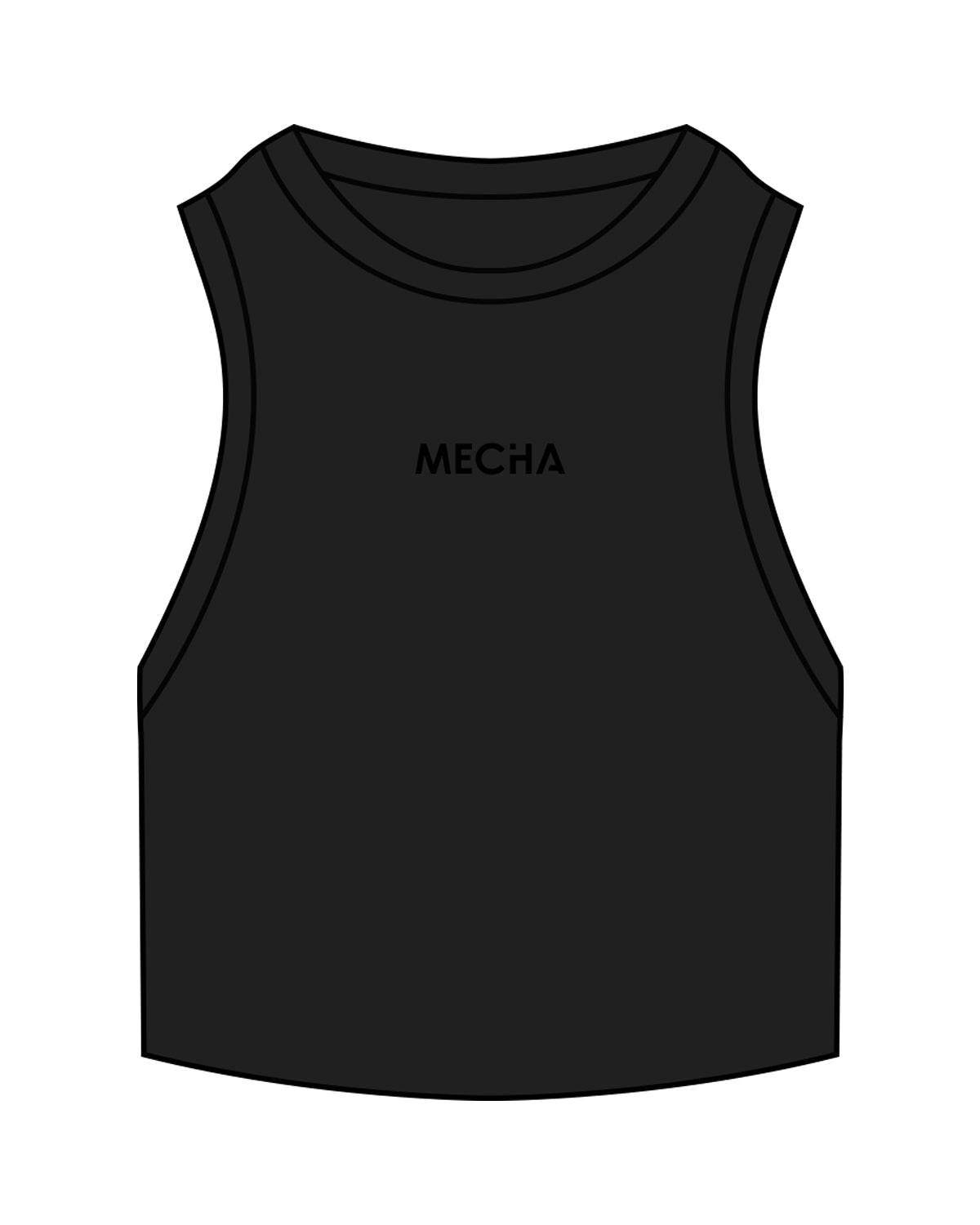 The Ribbed Crop Tank - Black - MECHA - Center Chest - Embroidered Black
