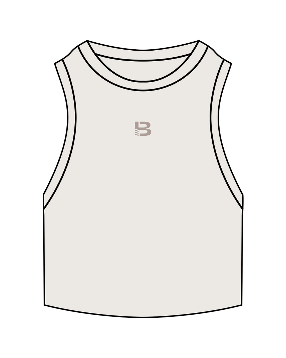 The Ribbed Crop Tank - Bone - Body Politik - Center Chest "B" - Embroidered Tone on Tone