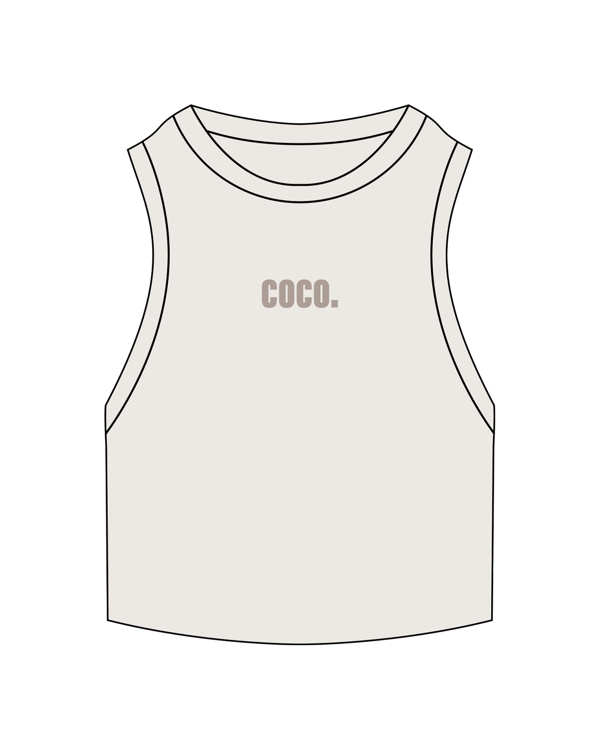 The Ribbed Crop Tank - Bone - Dr.Courtney - Center Chest - Embroidered Tone on Tone