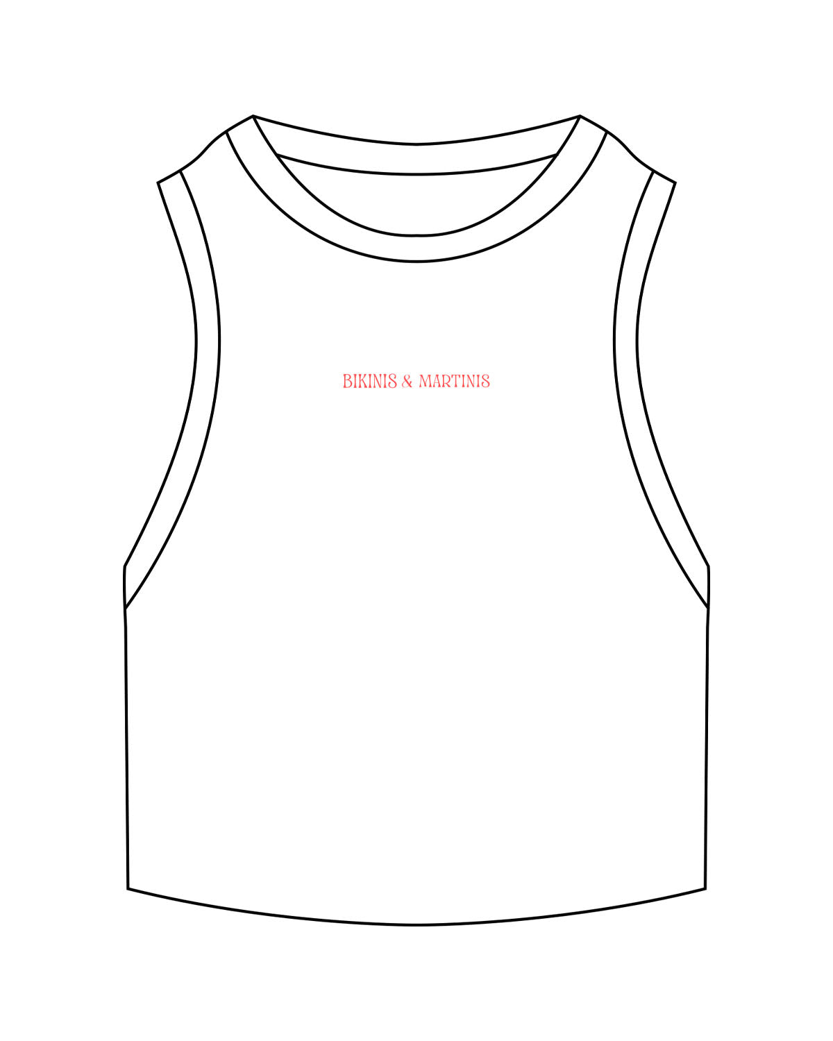 The Ribbed Crop Tank - White - Bikinis & Martinis - Center Chest - Embroidered - Coral