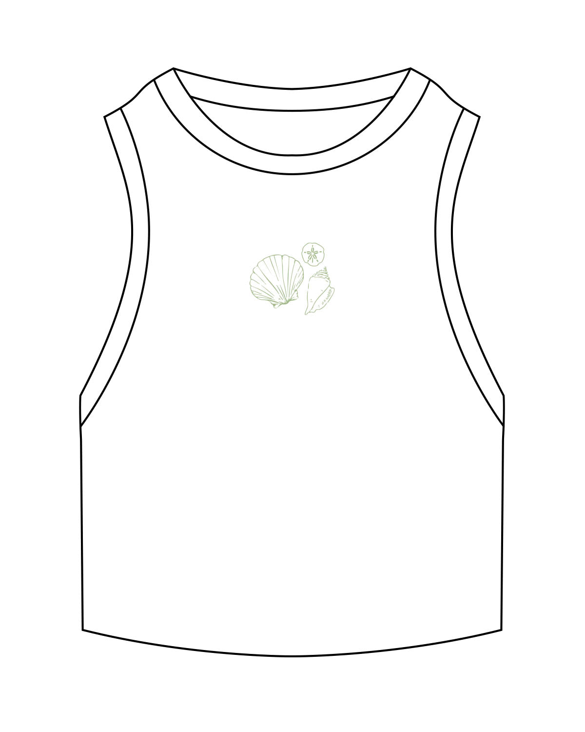 The Ribbed Crop Tank - White - Bikinis & Martinis - Center Chest - Embroidered - Sage