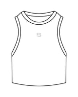The Ribbed Crop Tank - White - Body Politik - Center Chest "B" - Embroidered Light Gray