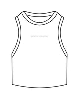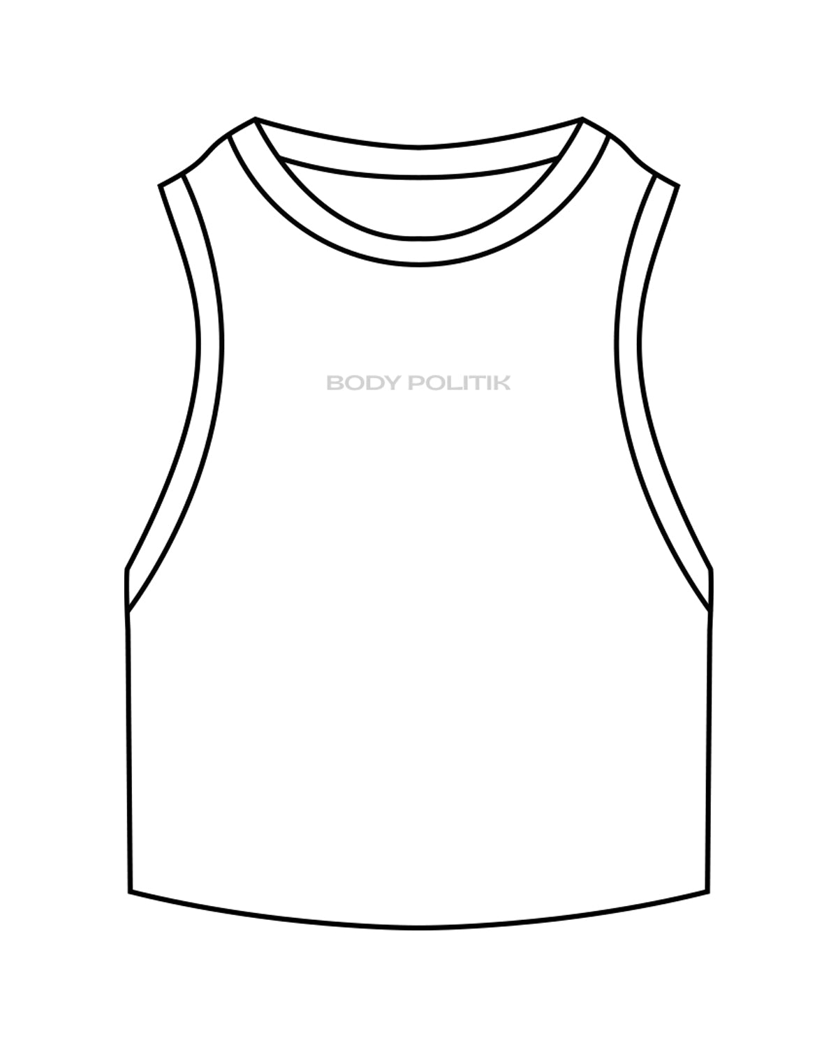 The Ribbed Crop Tank - White - Body Politik - Center Chest - Embroidered Light Gray