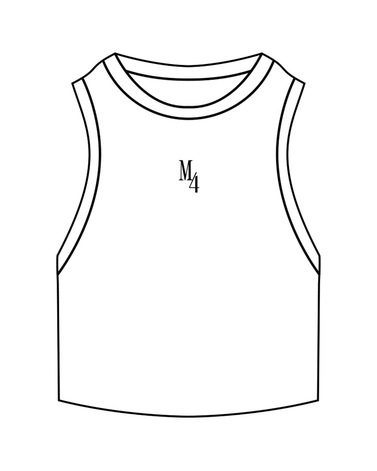 The Ribbed Crop Tank - White - M4Lagree - "M4" - Center Chest - Embroidered - Black