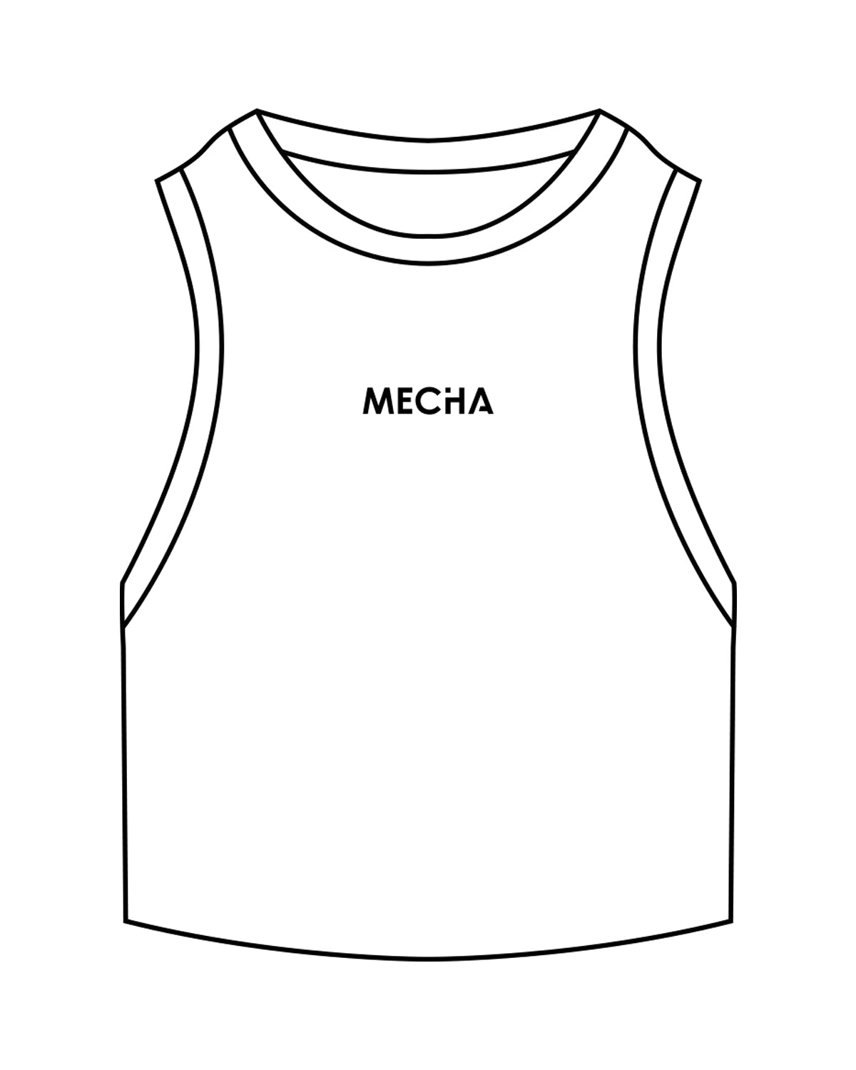 The Ribbed Crop Tank - White - MECHA - Center Chest - Embroidered Black