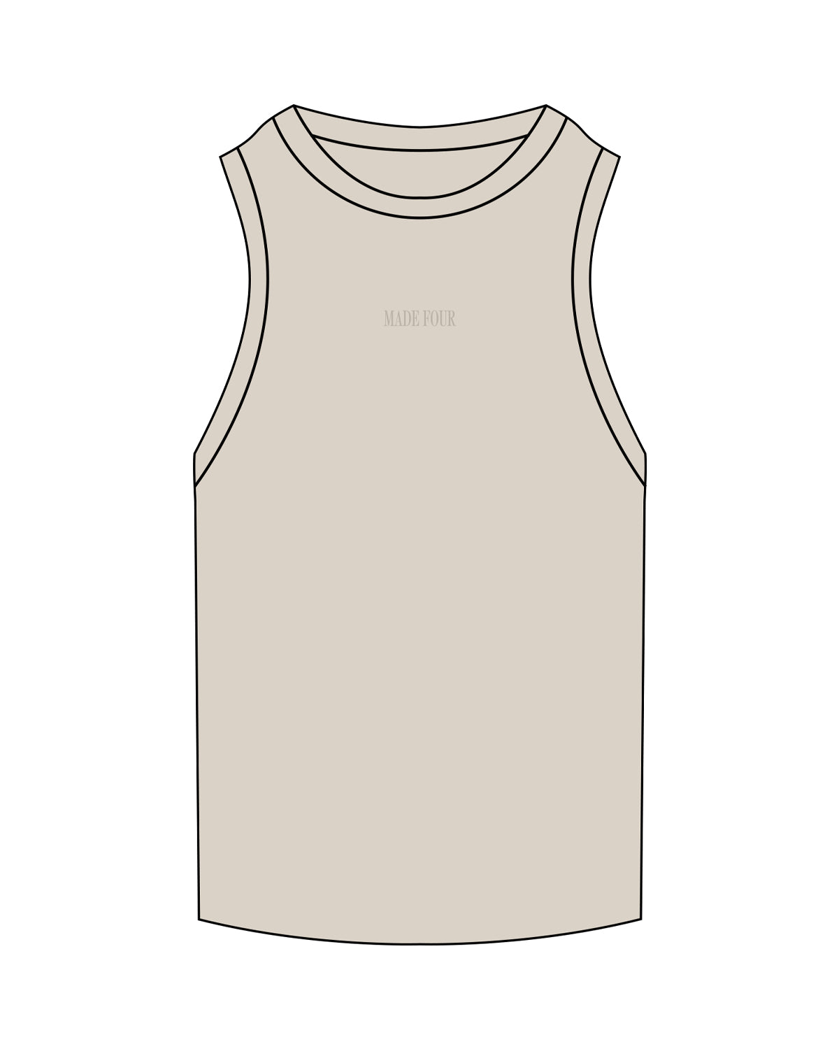 The Ribbed Full Length Tank - Bone - M4Lagree - Center Chest - Embroidered Tone on Tone