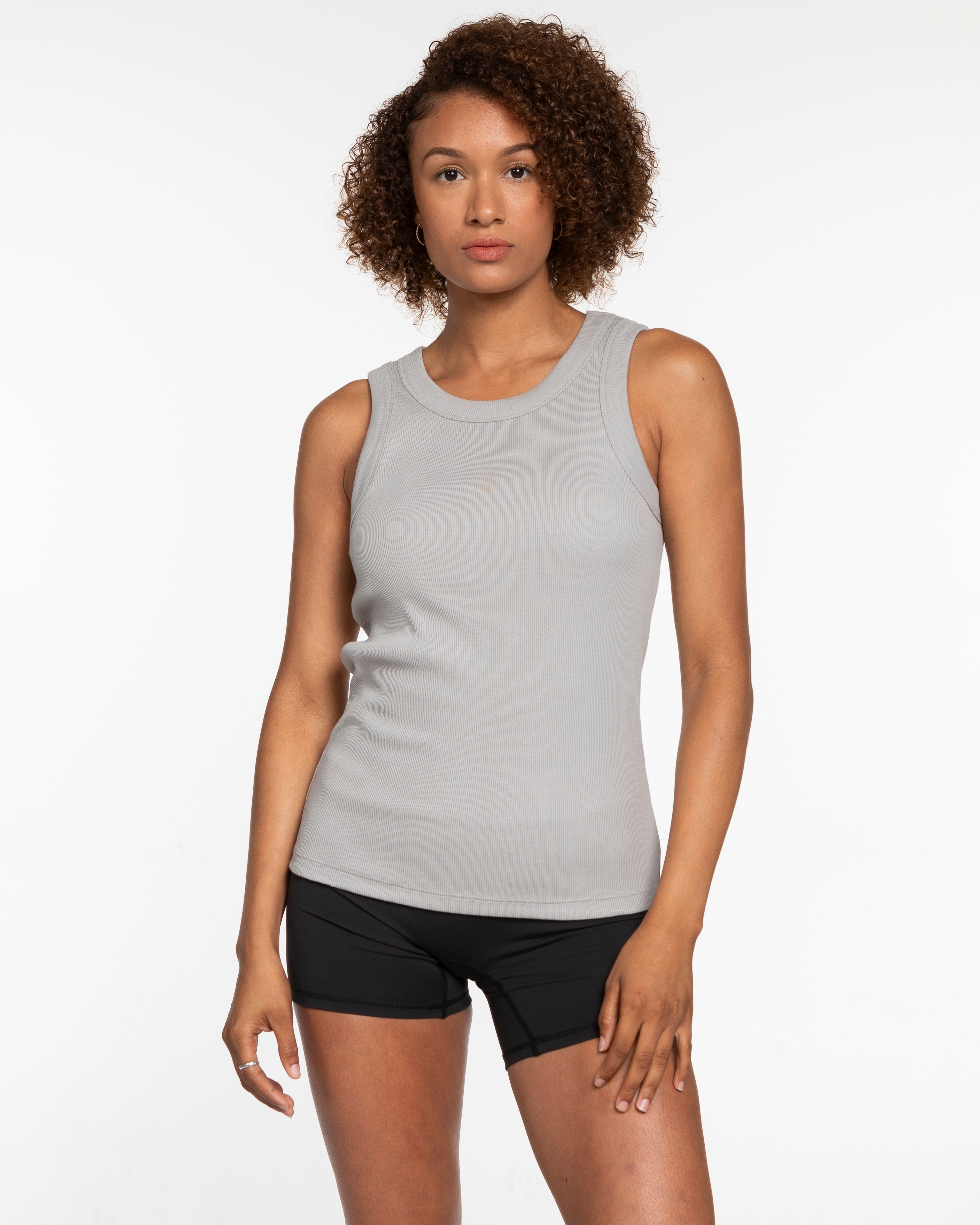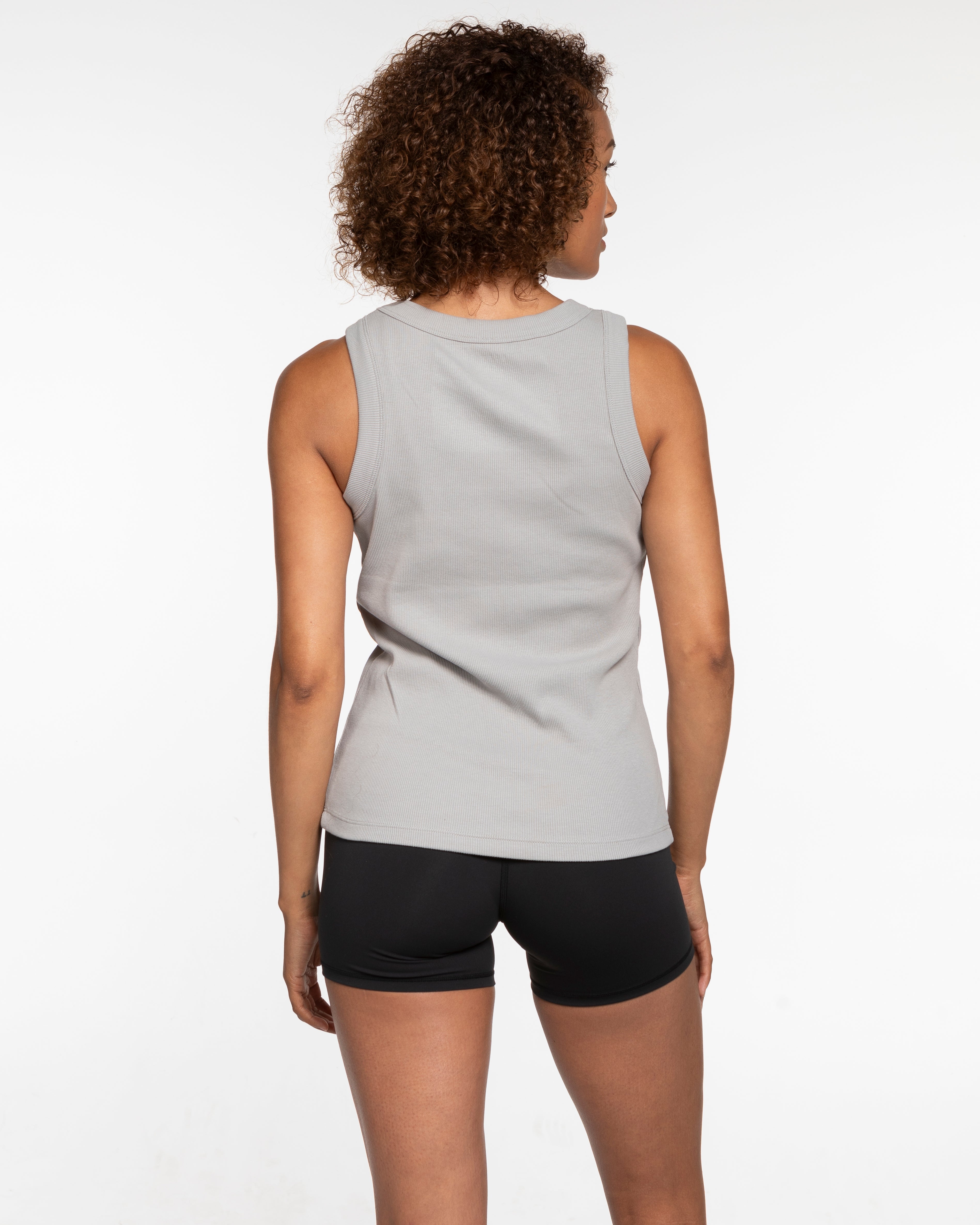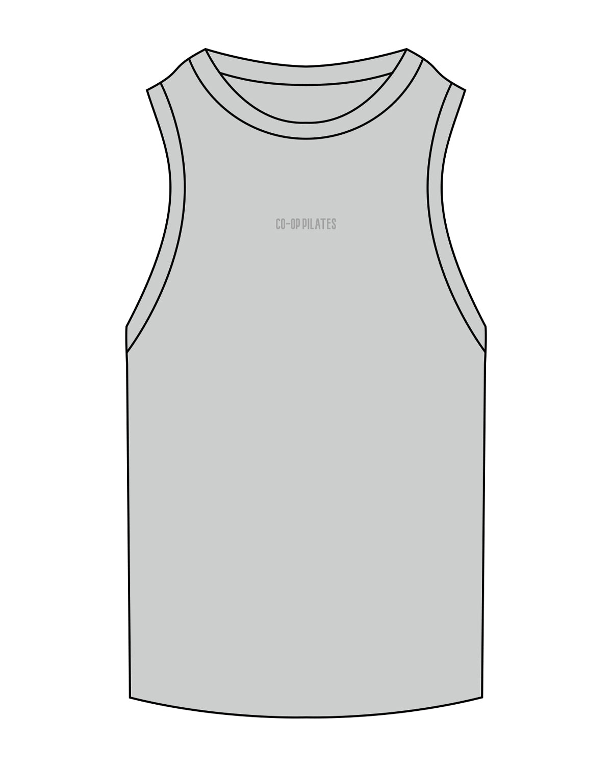 The Ribbed Full Length Tank - Storm - Co-Op Pilates - Center Chest - Embroidered Tone on Tone