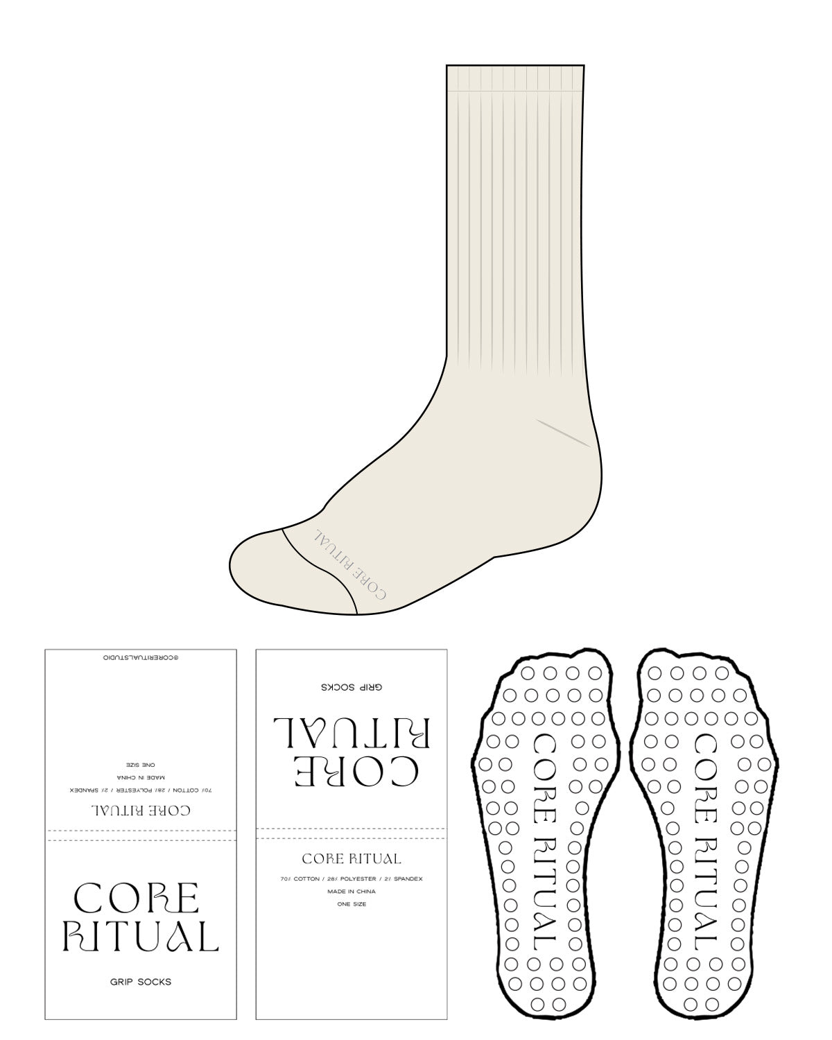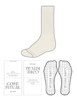 The Slouch Sock - Off White - Core Ritual - Bottom Center - Text - Gray - Grip - Transparent Circle Grip