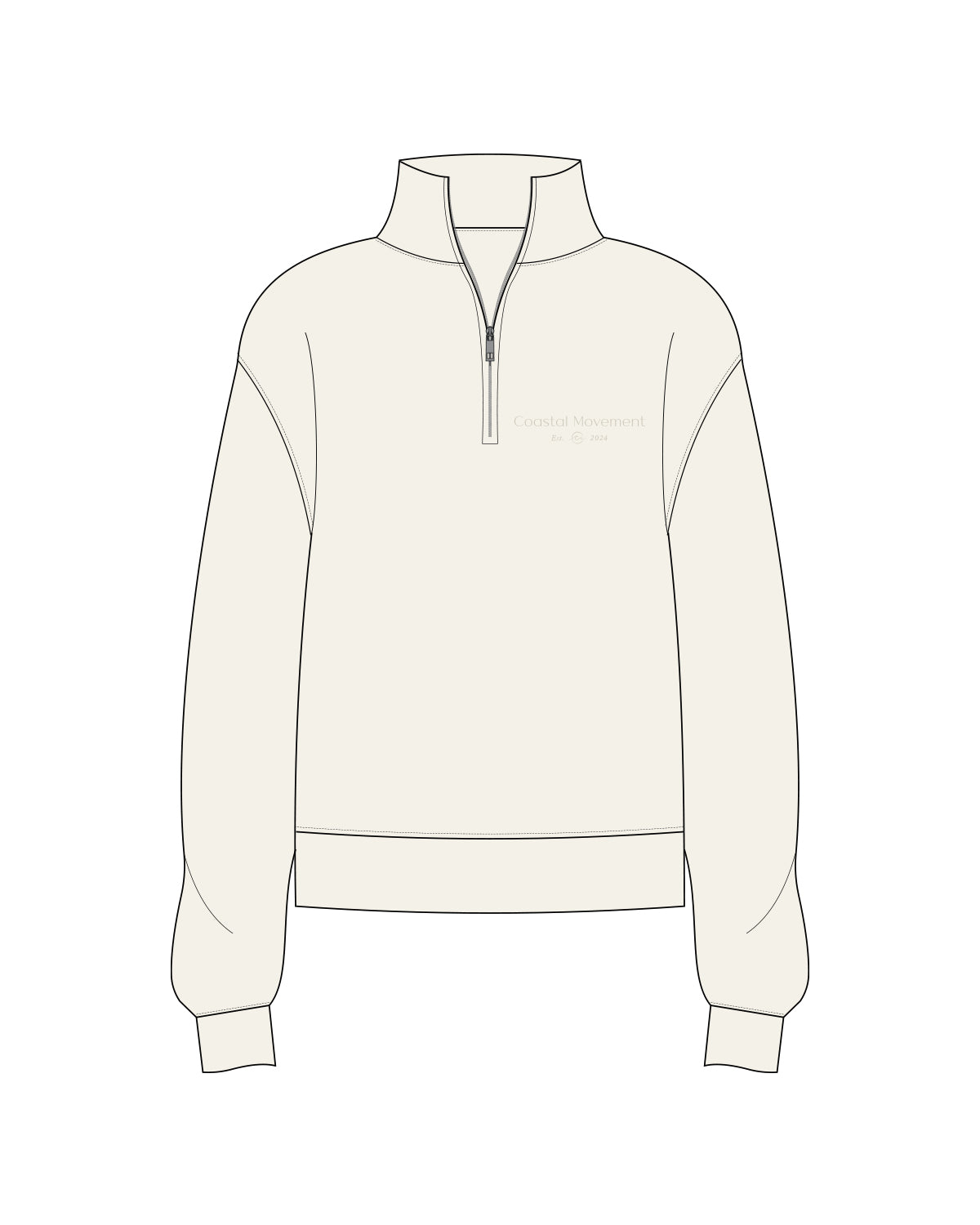 The Womens 1/4 Zip - Off White - Coastal Movement - Left Chest - Embroidered - Tone on Tone