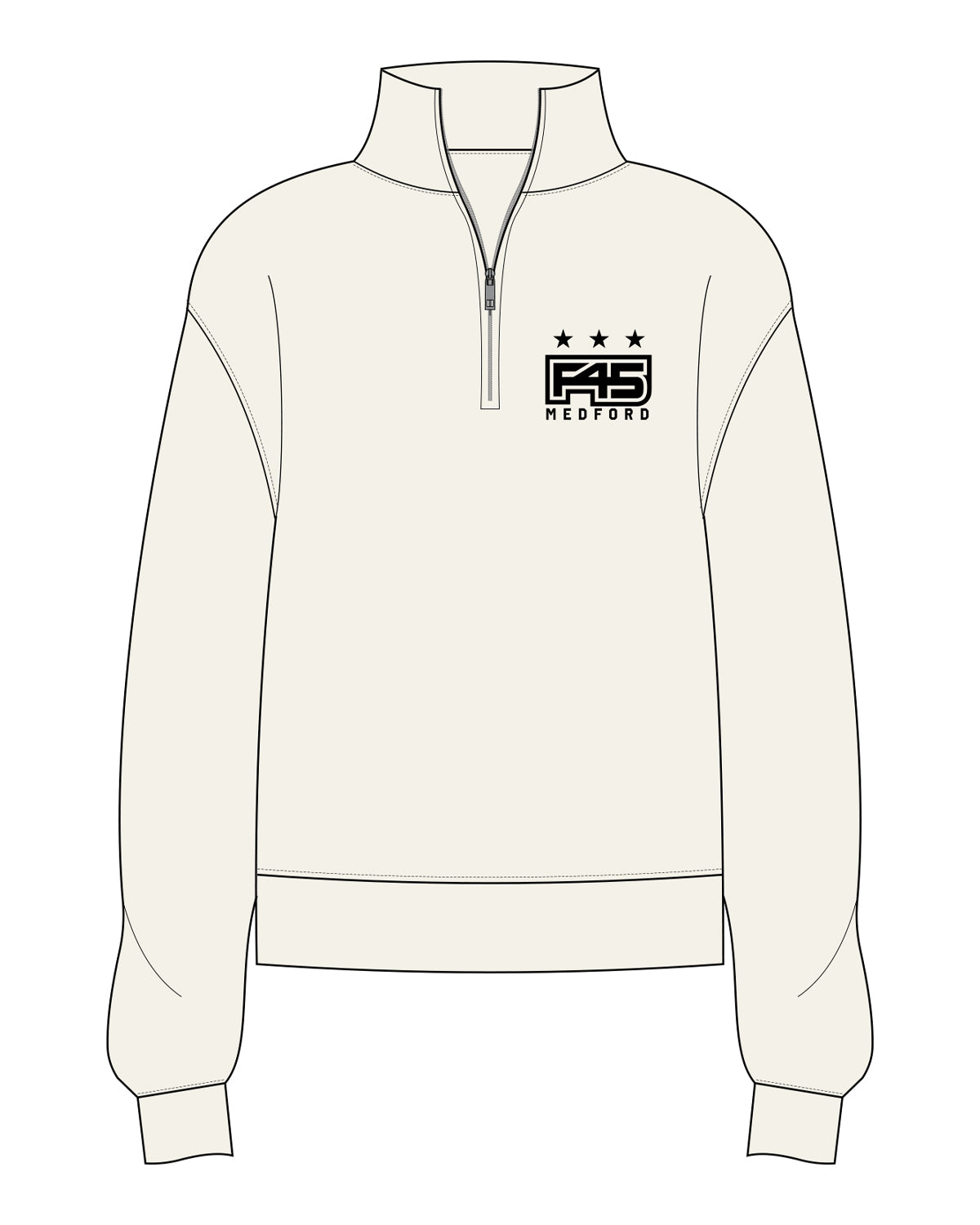 The Womens 1/4 Zip - Off White - F45 Medford - Left Chest Stacked - Black