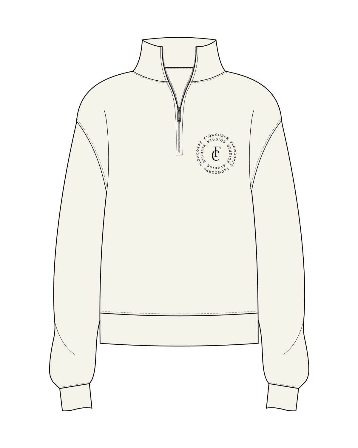 The Womens 1/4 Zip - Off White - Flowcorps - Left Chest Round Stacked - Black