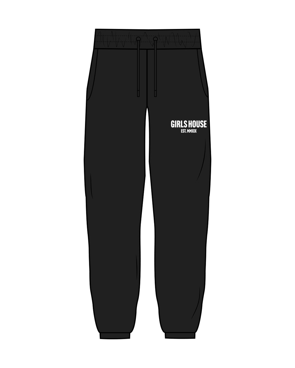 The Womens Classic Sweatpants - Black - GODSHOUSE - Left Leg Pocket - White