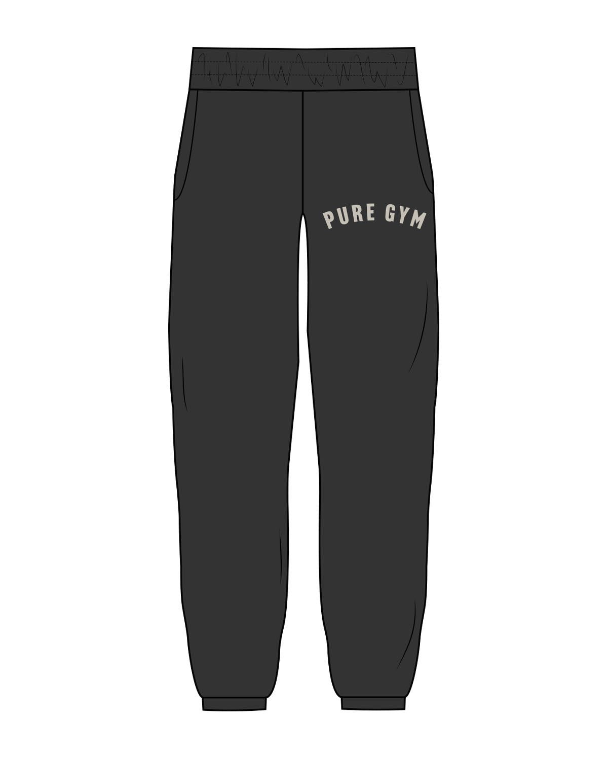 The Womens Classic Sweatpants - Black - Pure Movement - Left Leg - Below Pocket - Washed Bone