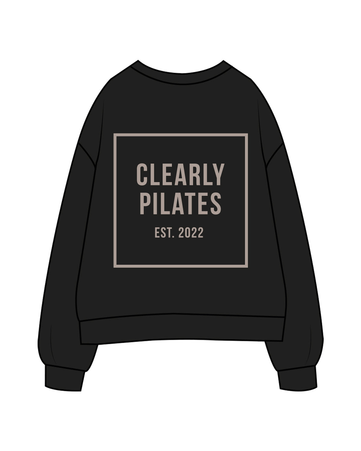 The Womens Crewneck - Black - Clearly Pilates - Back Center Stacked - Bone