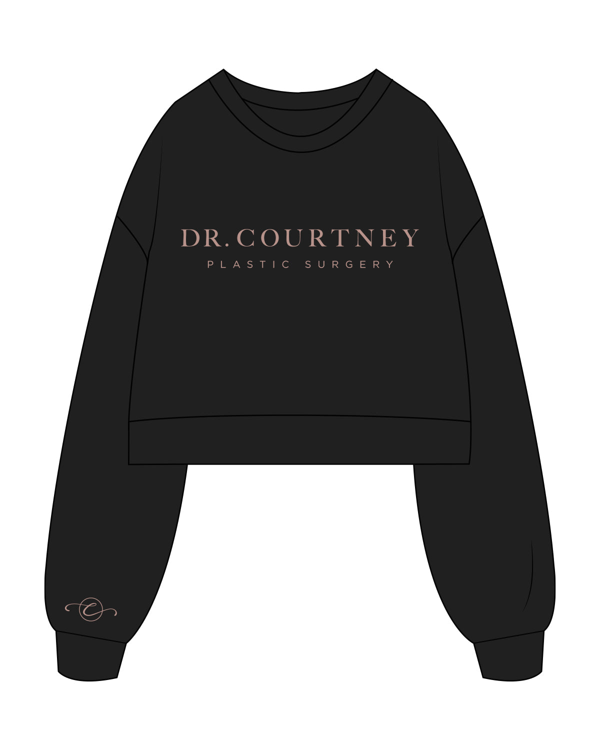 The Womens Crewneck - Black - Dr.Courtney - Center Chest Stacked & Right Wrist - Gloss Champagne Gold - M9