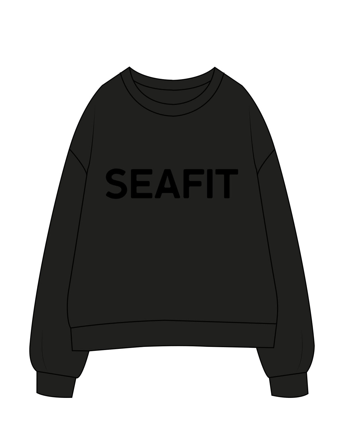 The Womens Crewneck - Black - Seafit - Center Chest - Tone on Tone