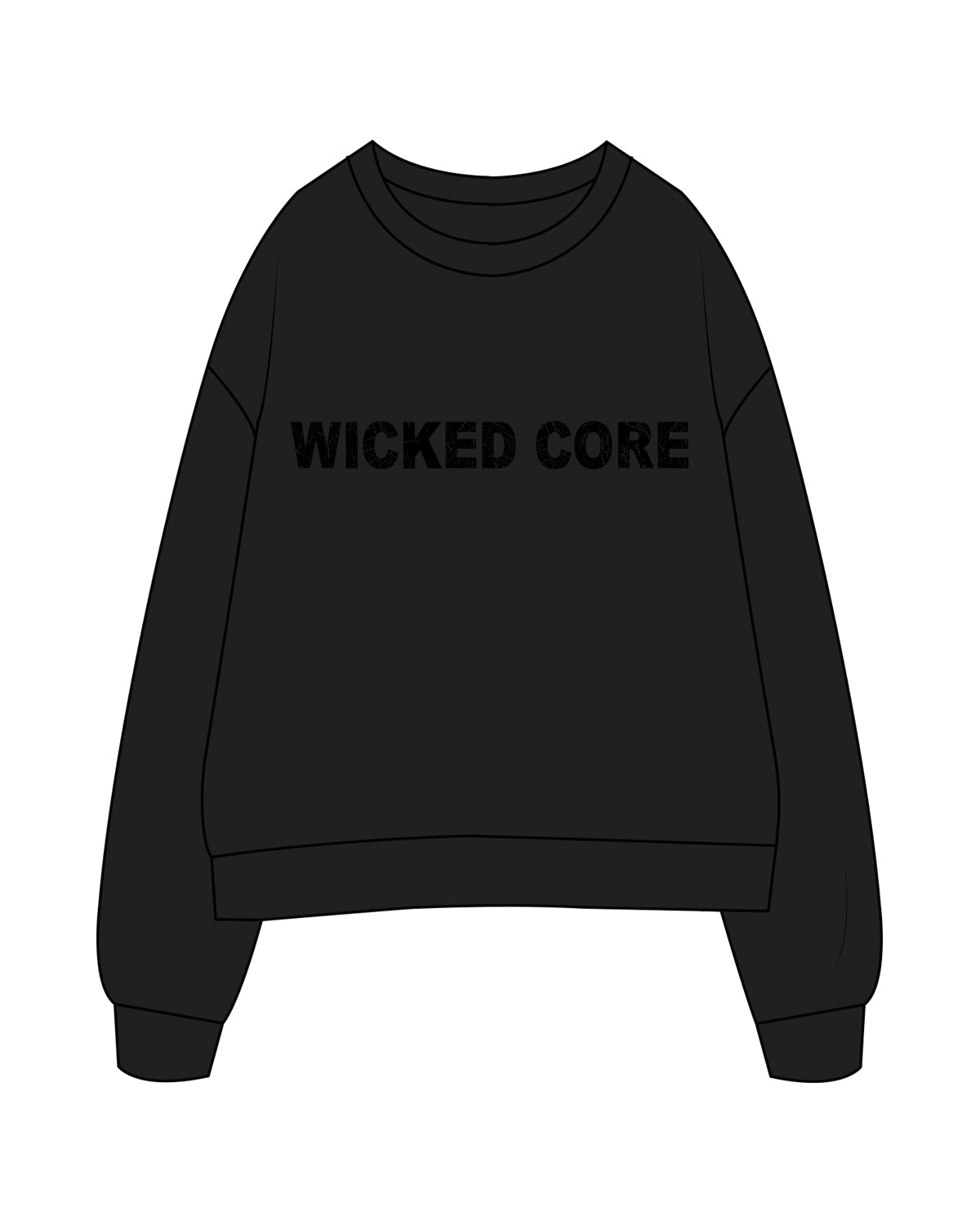 The Womens Crewneck - Black - Wicked Core - Center Chest - Tone on Tone