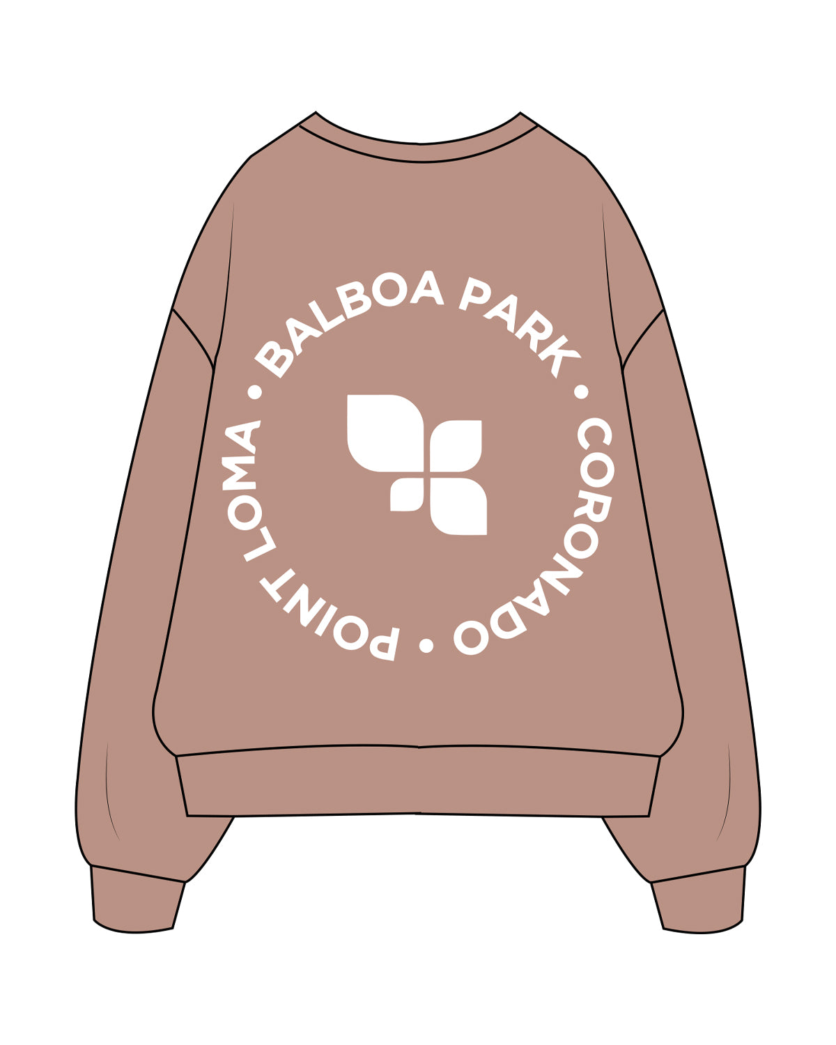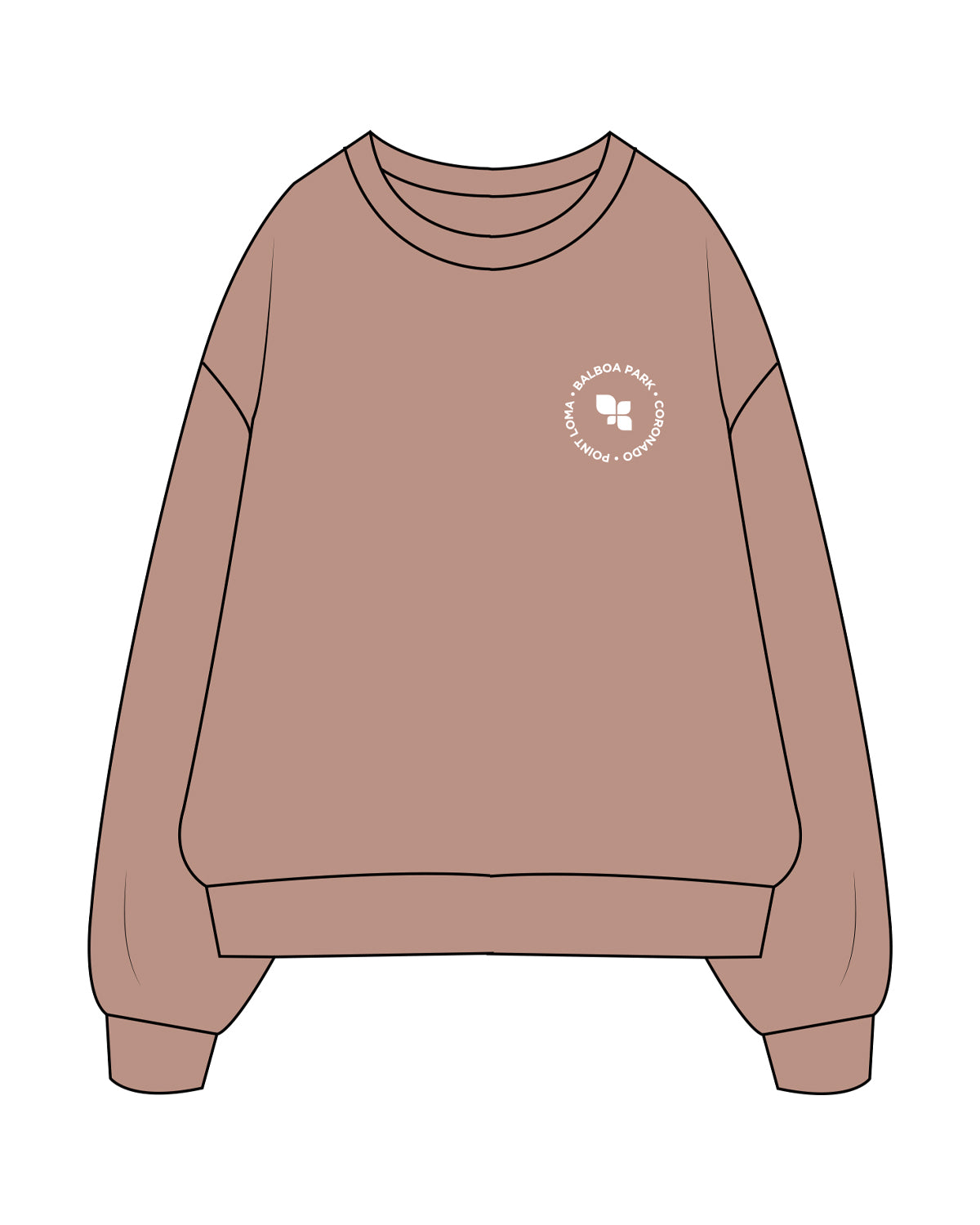 The Womens Crewneck - Clay - FIT4MOMBalboa - Left Chest & Back Center - White