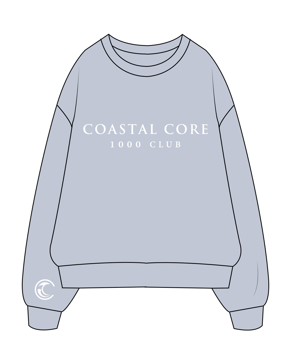 The Womens Crewneck - Powder - Coastal Core - Right Wrist & Center Chest " 1000 Club " - White