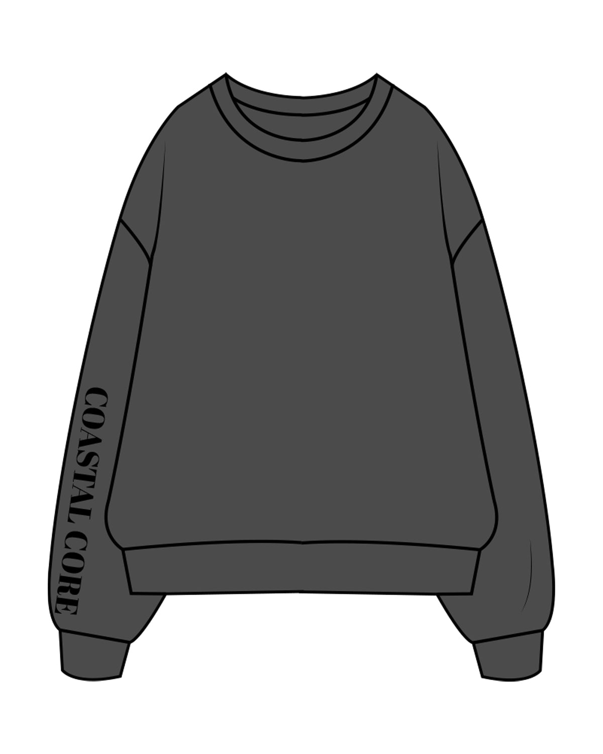 The Womens Crewneck - Washed Black - Coastal Core - Right Sleeve - Black